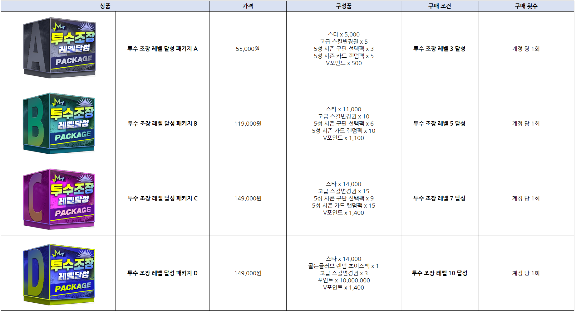 ■ 투수 조장 레벨 달성 패키지 출시 안내