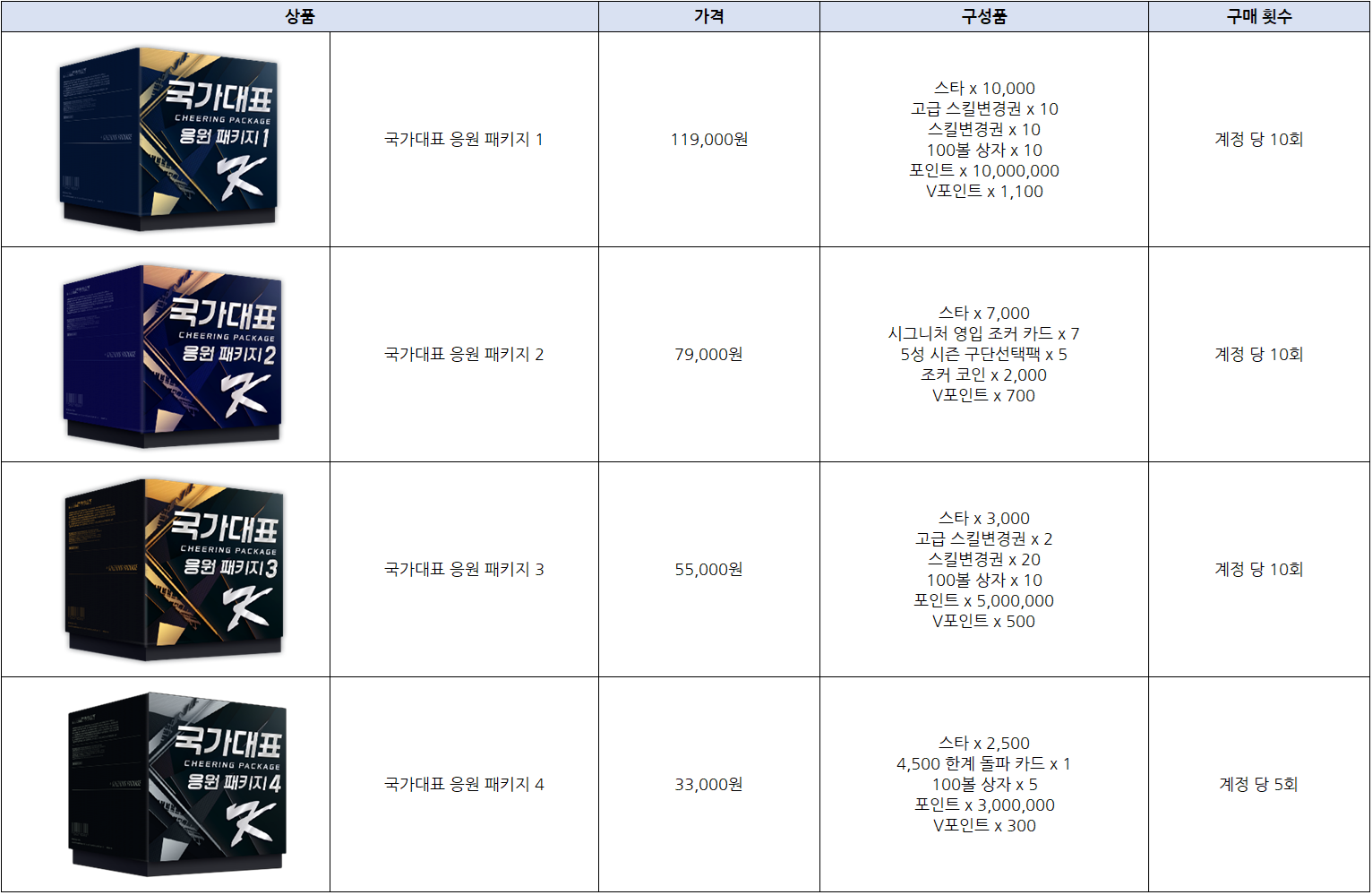 국가대표 응원 패키지가 11/13(목) 00:00 이후 부터 판매될 예정입니다.