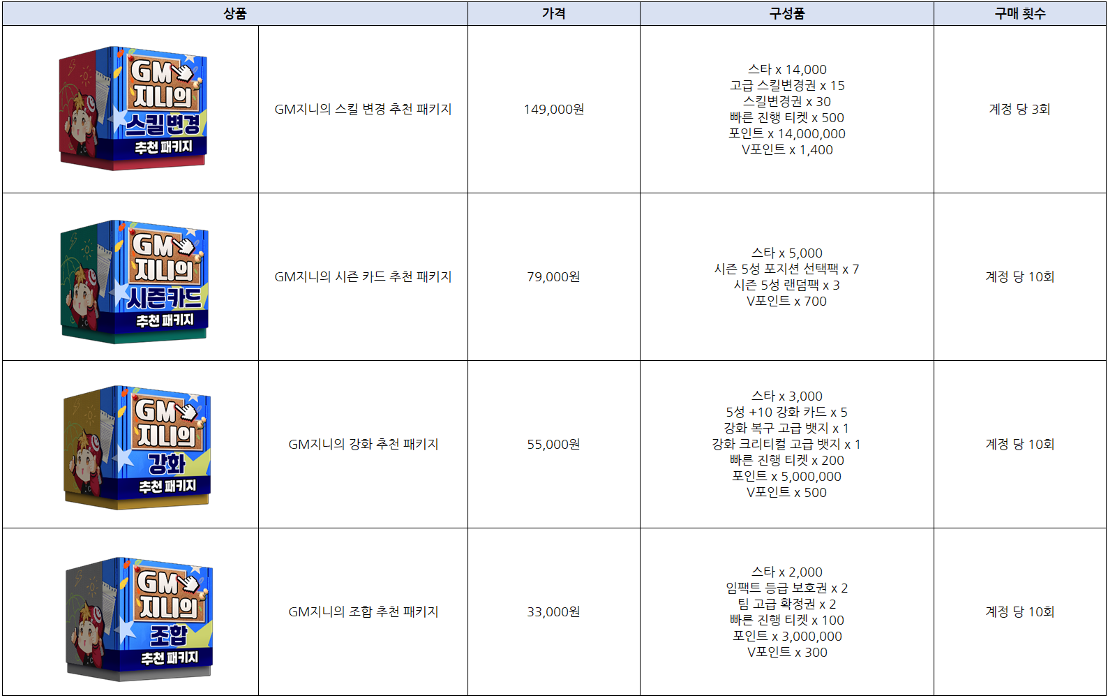[안내] GM지니의 추천 패키지 판매 일정 안내 [~11/27(목) 23:59]