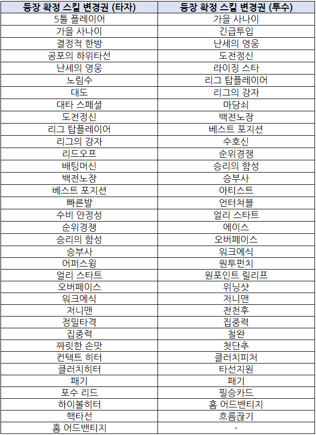 ※ 향후 동일 또는 유사하게 판매 시에도 해당 아이템의 아래 스킬 목록 및 각 스킬 등장 확률은 이후 변동되지 않습니다.