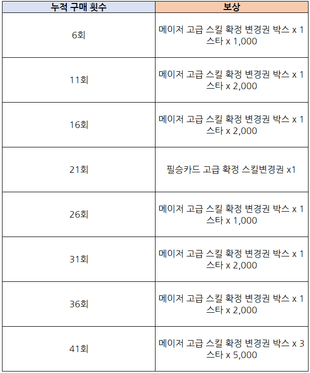 ▶ 메이저 등급 스킬 확정 고급 스킬 변경권 박스 구성