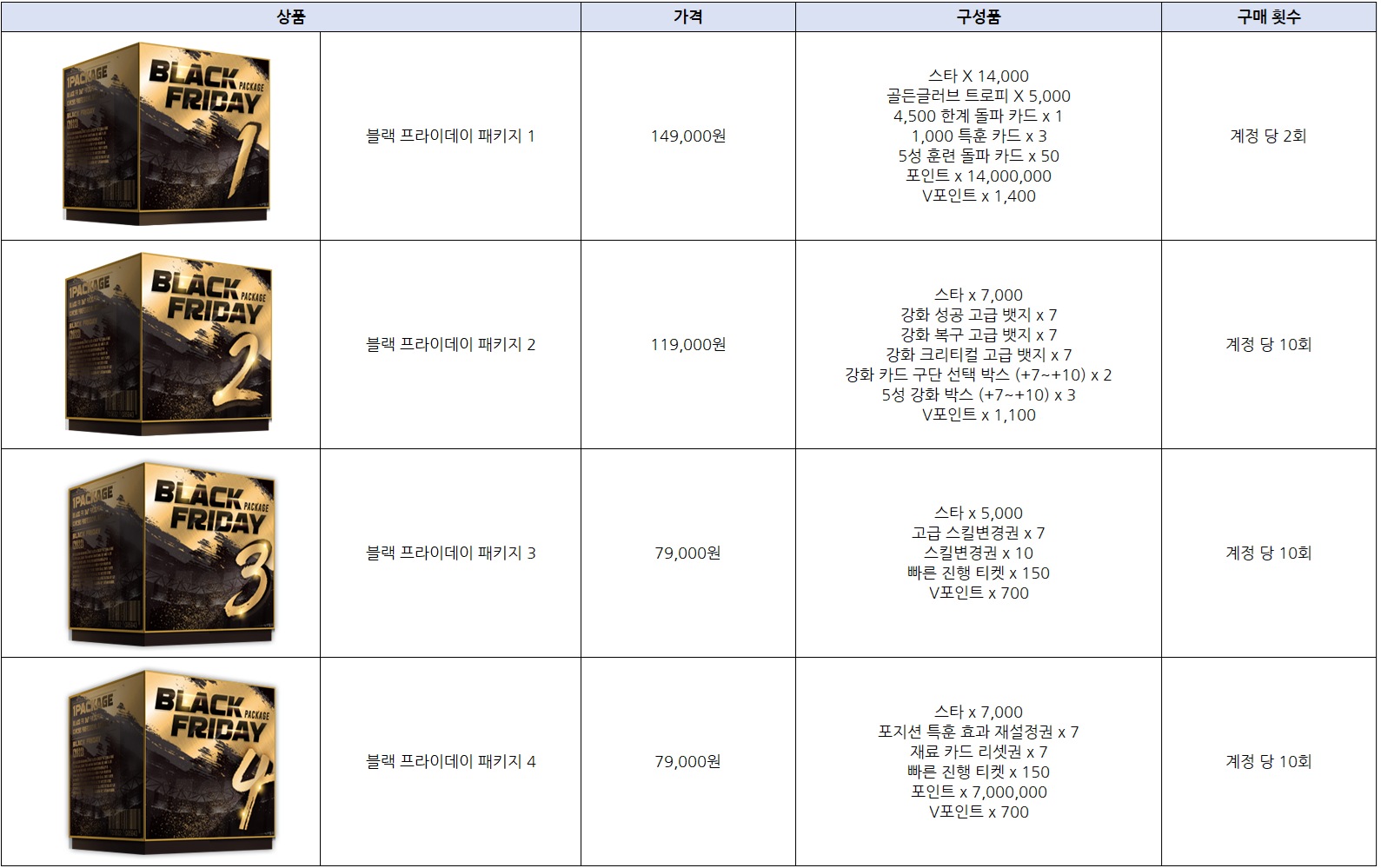 블랙 프라이데이 패키지가 11/27(목) 00:00부터 판매될 예정입니다.
