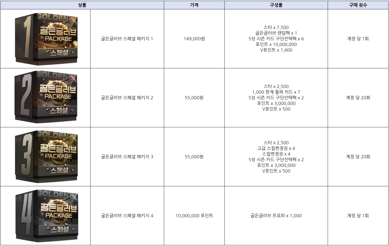 골든글러브 스페셜 패키지가 12/3(수) 라이브 업데이트 이후 부터 판매될 예정입니다.