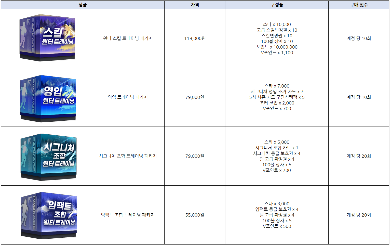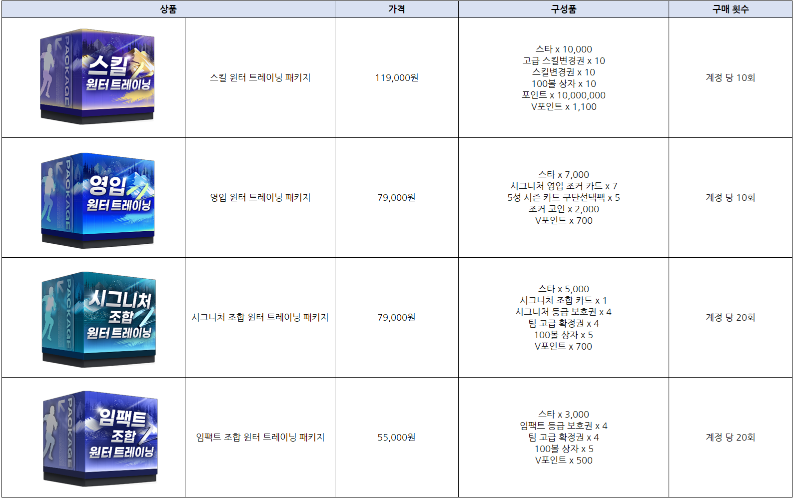 윈터 트레이닝 패키지가 12/9(화) 00:00 이후 부터 판매될 예정입니다.