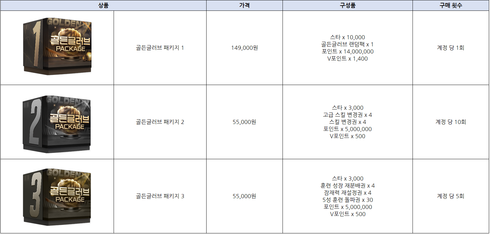 ※ 패키지 및 상품 구매 시 상품은 우편함으로 지급됩니다.