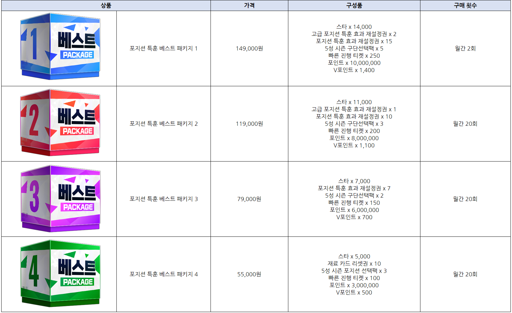[안내] 포지션 특훈 베스트 패키지 판매 일정 안내 [~1/21(수) 23:59]