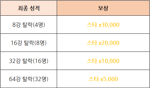 * 1~4위 구단주님께는 상금 외 30,000스타도 지급됩니다.