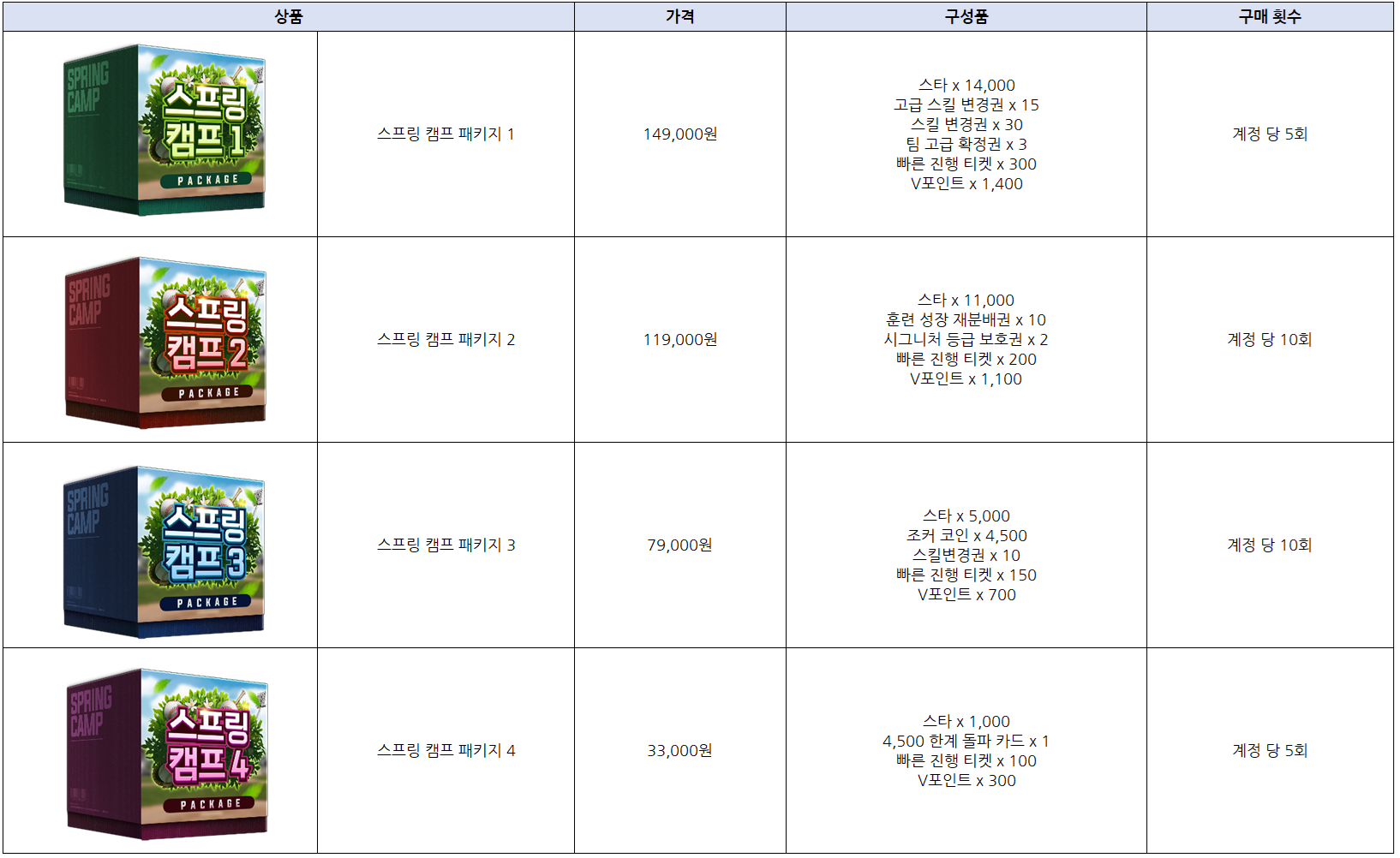 [안내] 스프링 캠프 패키지 판매 일정 안내 [~2/8(일) 23:59]
