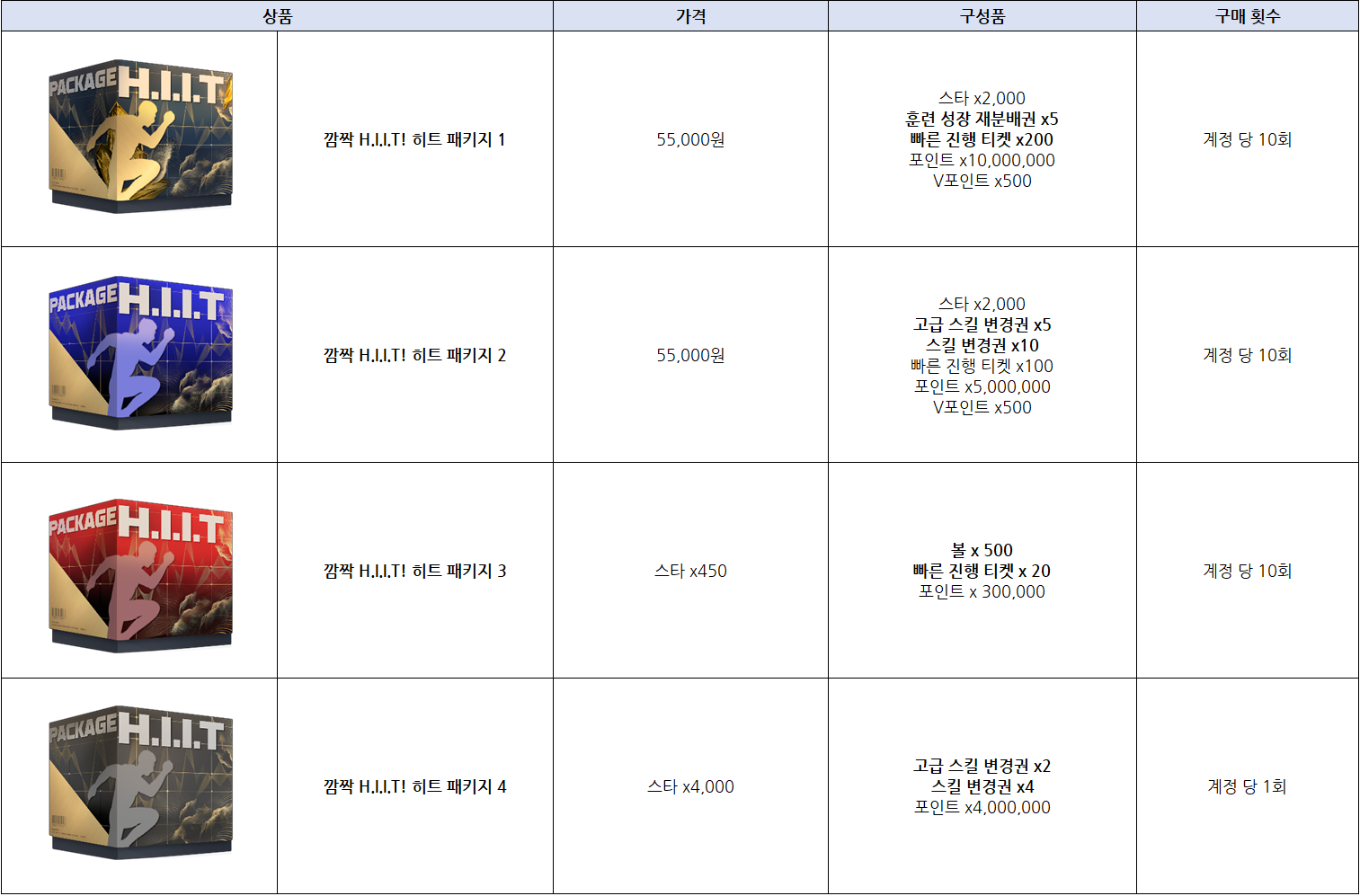 깜짝 HIIT 히트 패키지가 2/10(화) 00:00 이후 부터 판매될 예정입니다.