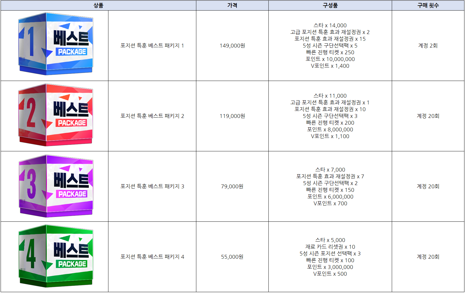 포지션 특훈 베스트 패키지가 2/10(화) 00:00 이후 부터 판매될 예정입니다.