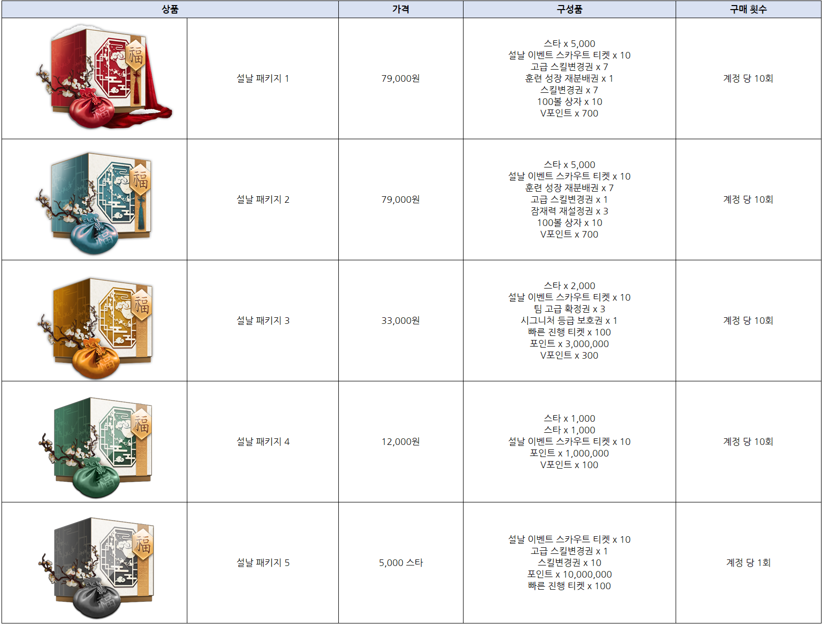 ※ 패키지 및 상품 구매 시 상품은 우편함으로 지급됩니다.