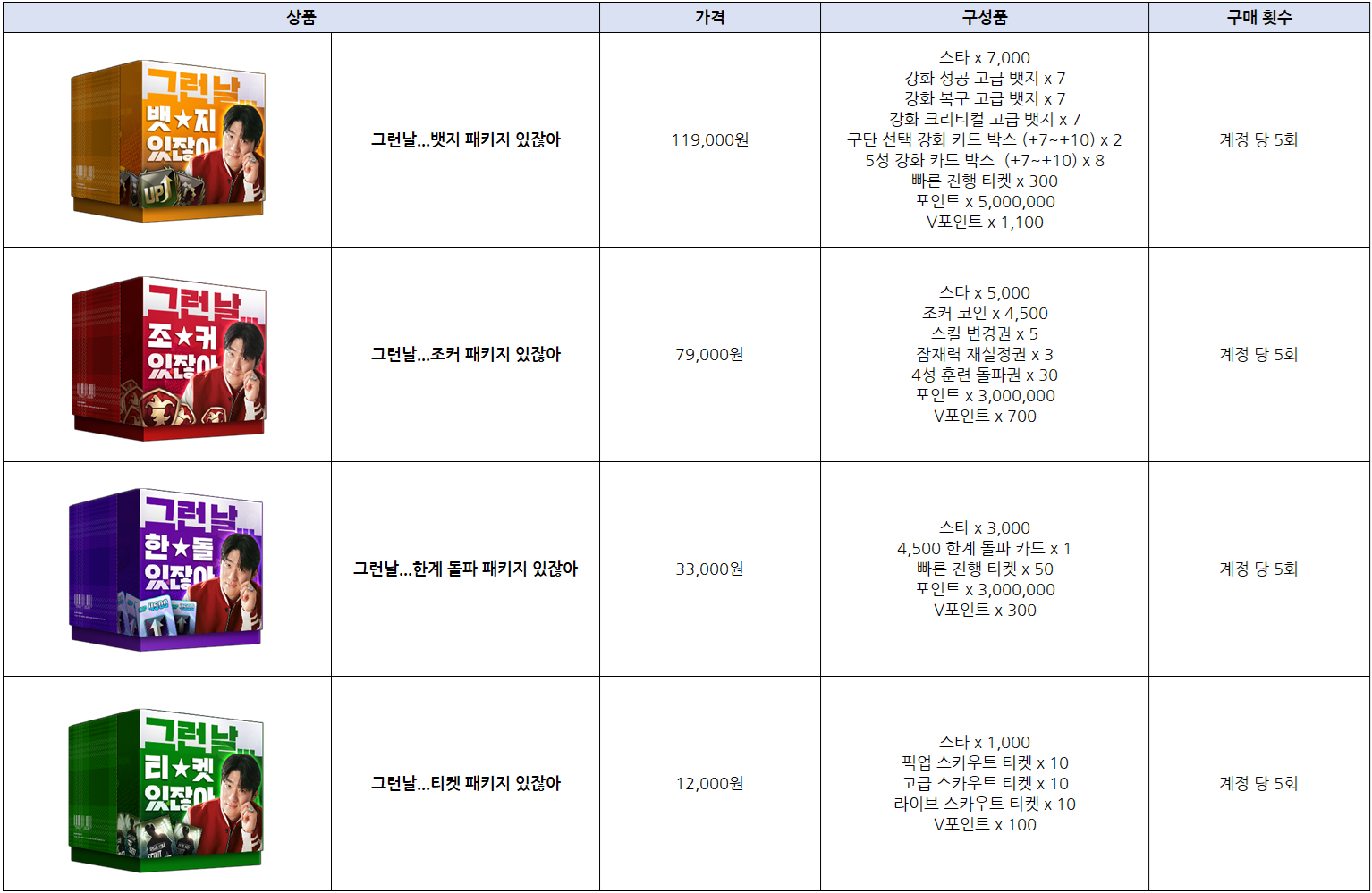 ※ 패키지 및 상품 구매 시 상품은 우편함으로 지급됩니다.