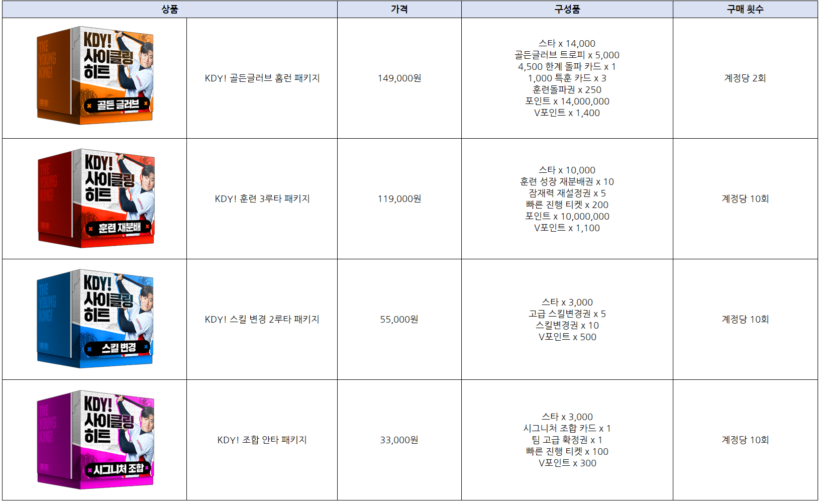 KDY! 사이클링 히트 패키지가 3/12(목) 00:00 부터 판매될 예정입니다.