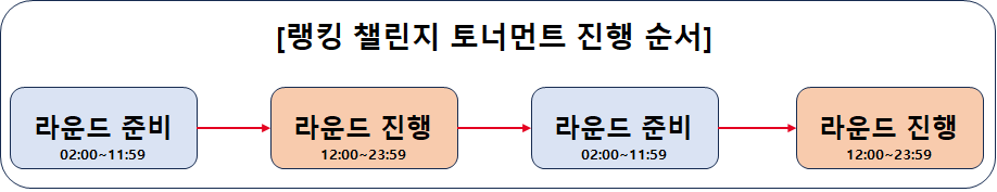 * 라운드 준비 기간: 02:00 ~ 12:00 / 라운드 진행 기간: 12:00 ~ 23:59