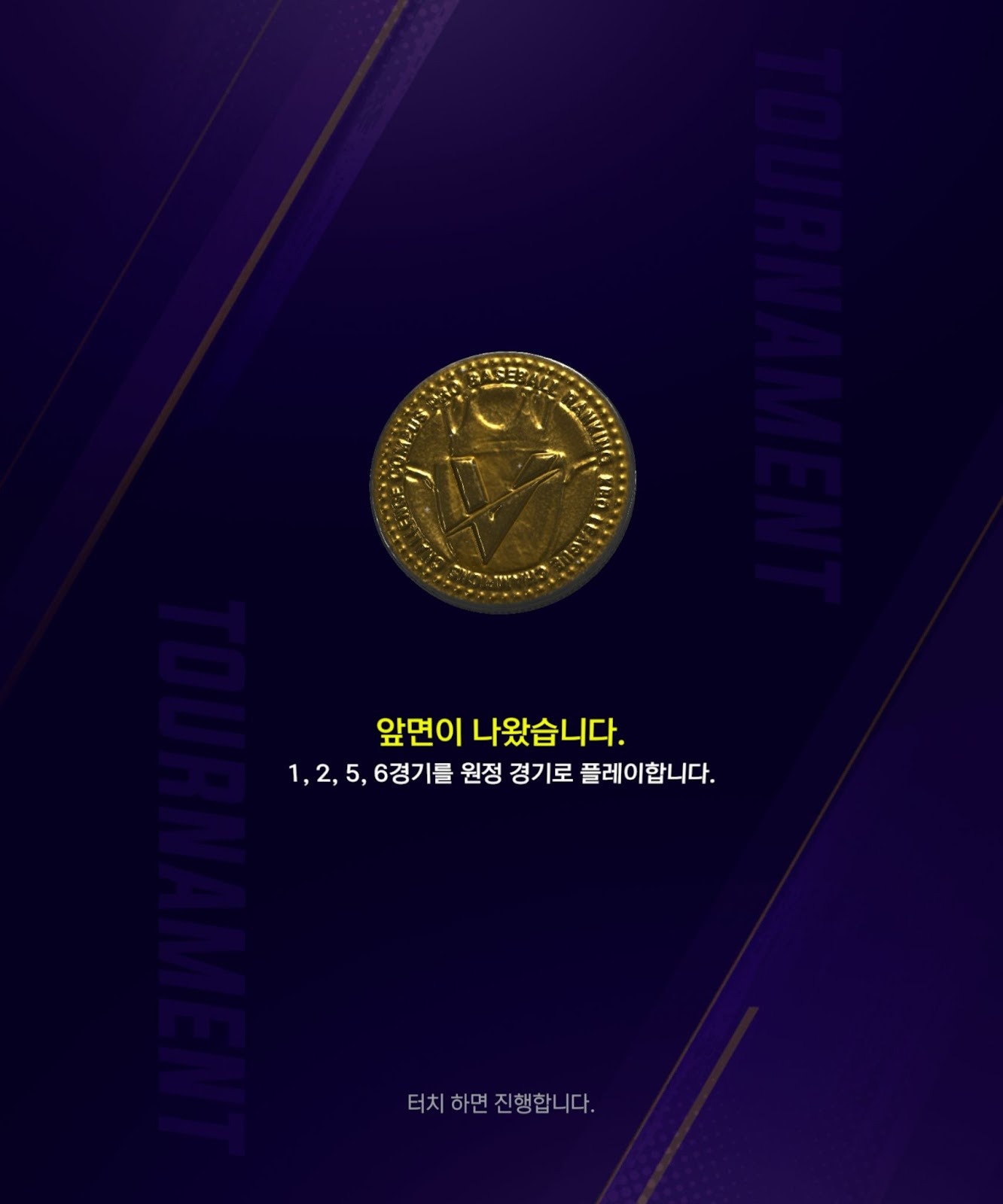 - 7경기 중 공격 기회(4경기/3경기)는 토너먼트 화면 입장 시 코인 토스를 통해 결정됩니다.