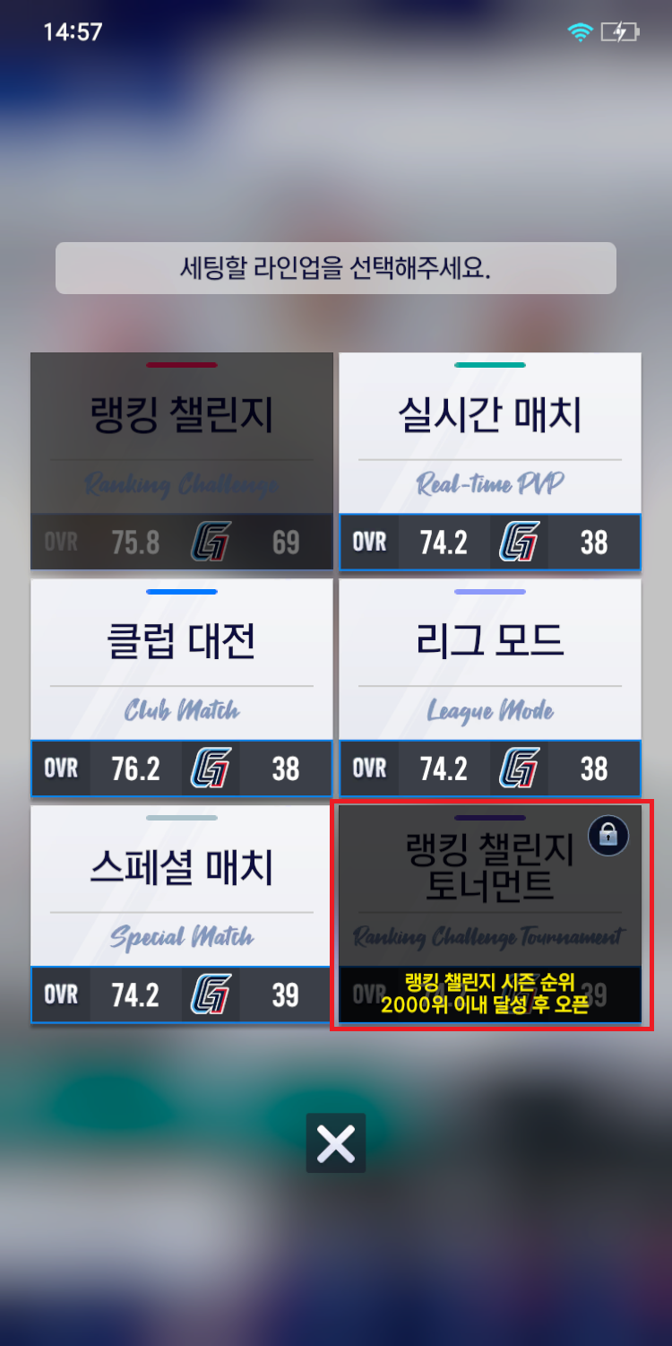 - 랭킹 챌린지 시즌 3,000등 이내 진입 시 토너먼트 라인업 해금 및 구성이 가능합니다.