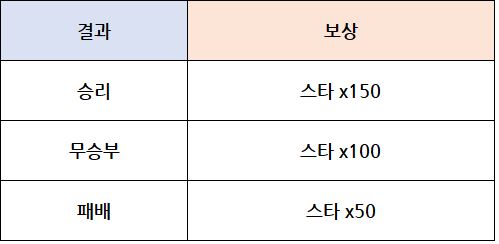 * 각종 예외 상황으로 인한 몰수된 경기에서는 보상을 획득할 수 없습니다.