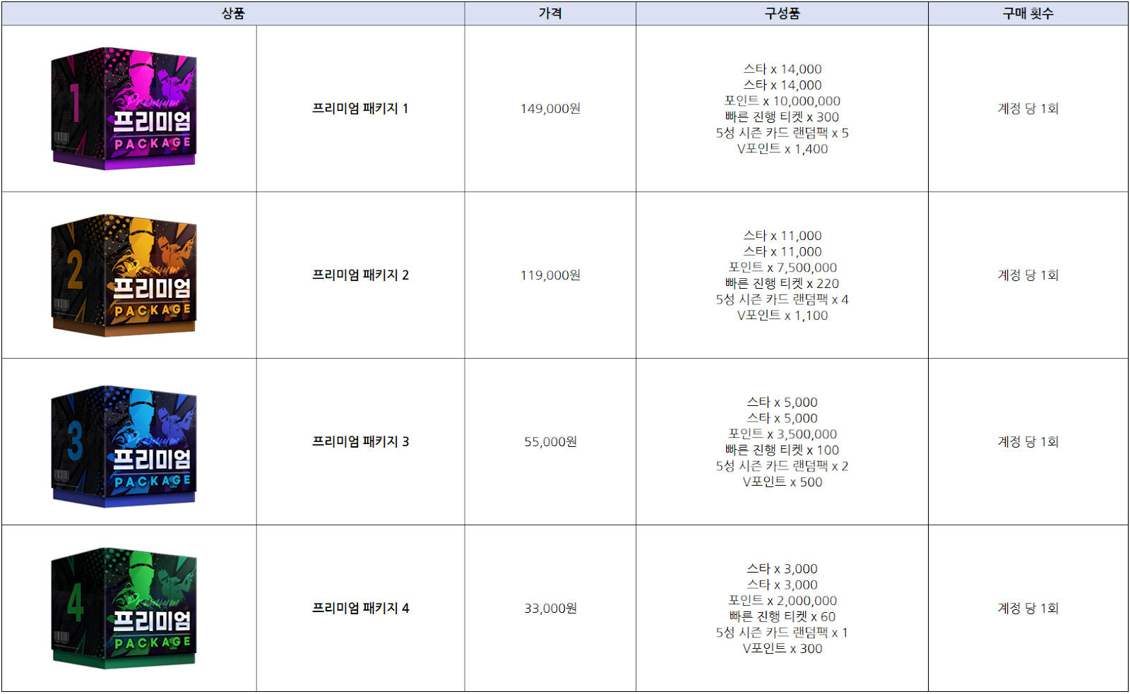 프리미엄 패키지가 3/27(금) 00:00 부터 판매될 예정입니다.