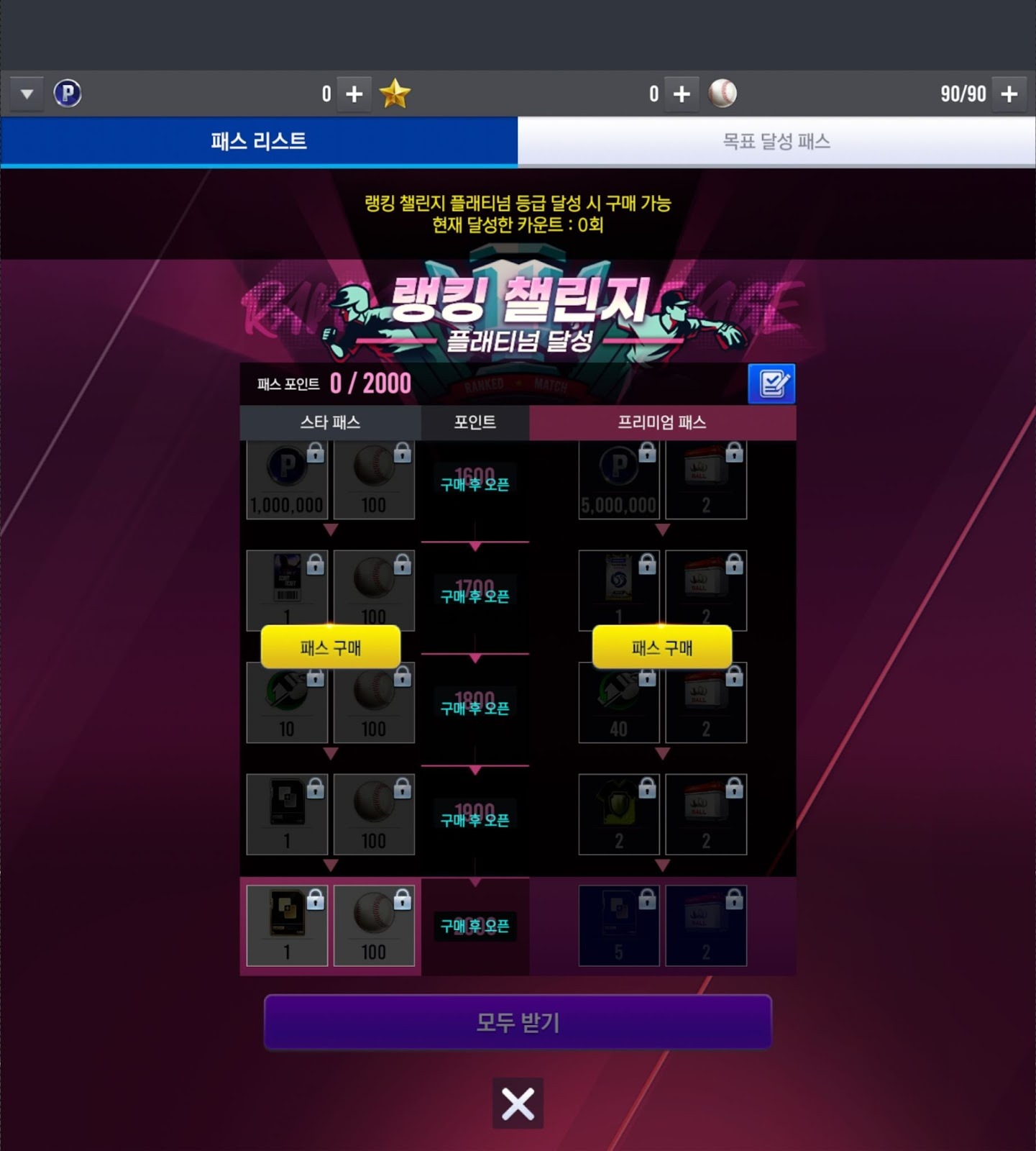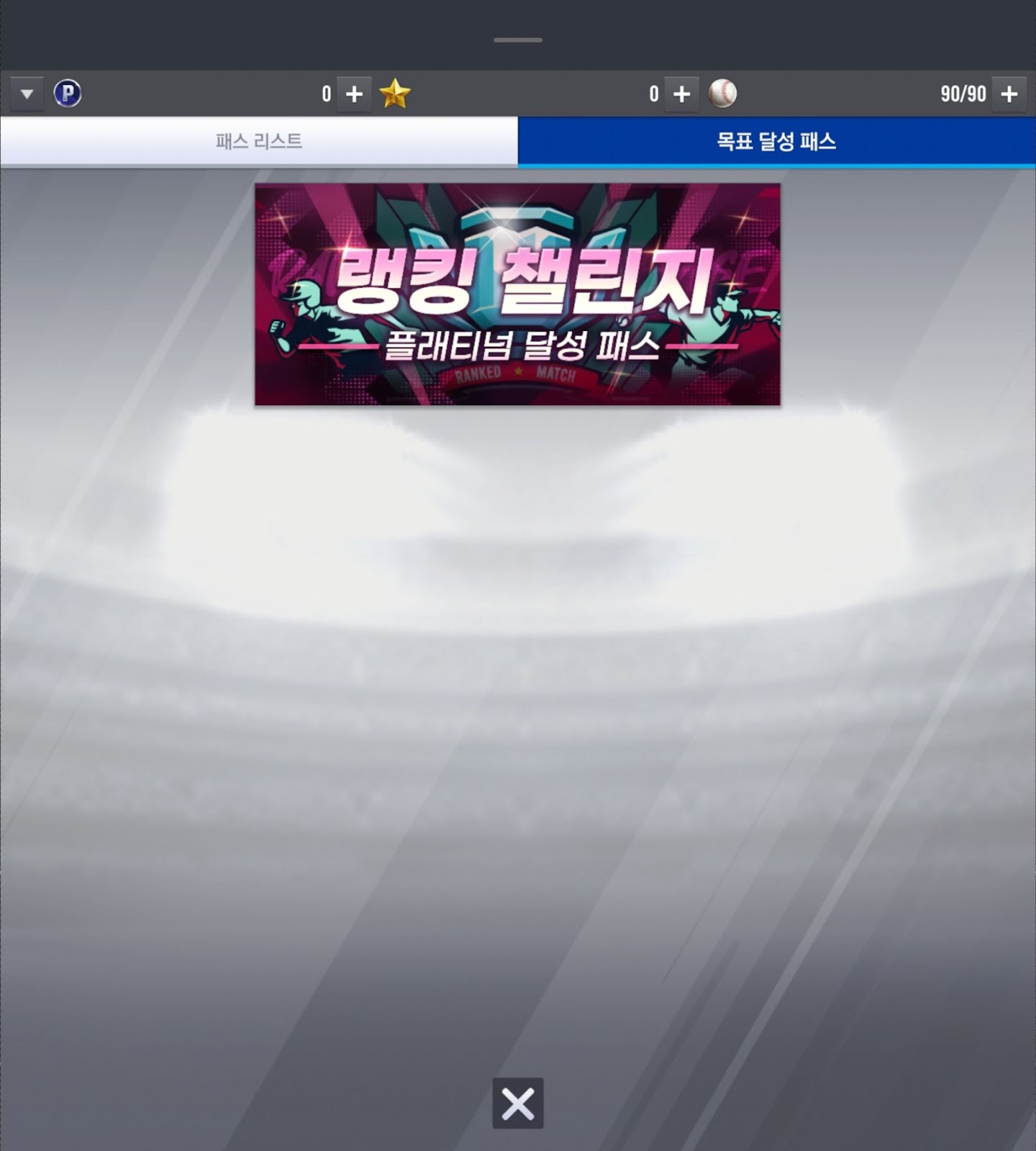 - 랭킹 챌린지 플래티넘 달성 패스는 플레이 패스 > 목표 달성 패스에서 확인하실 수 있습니다.