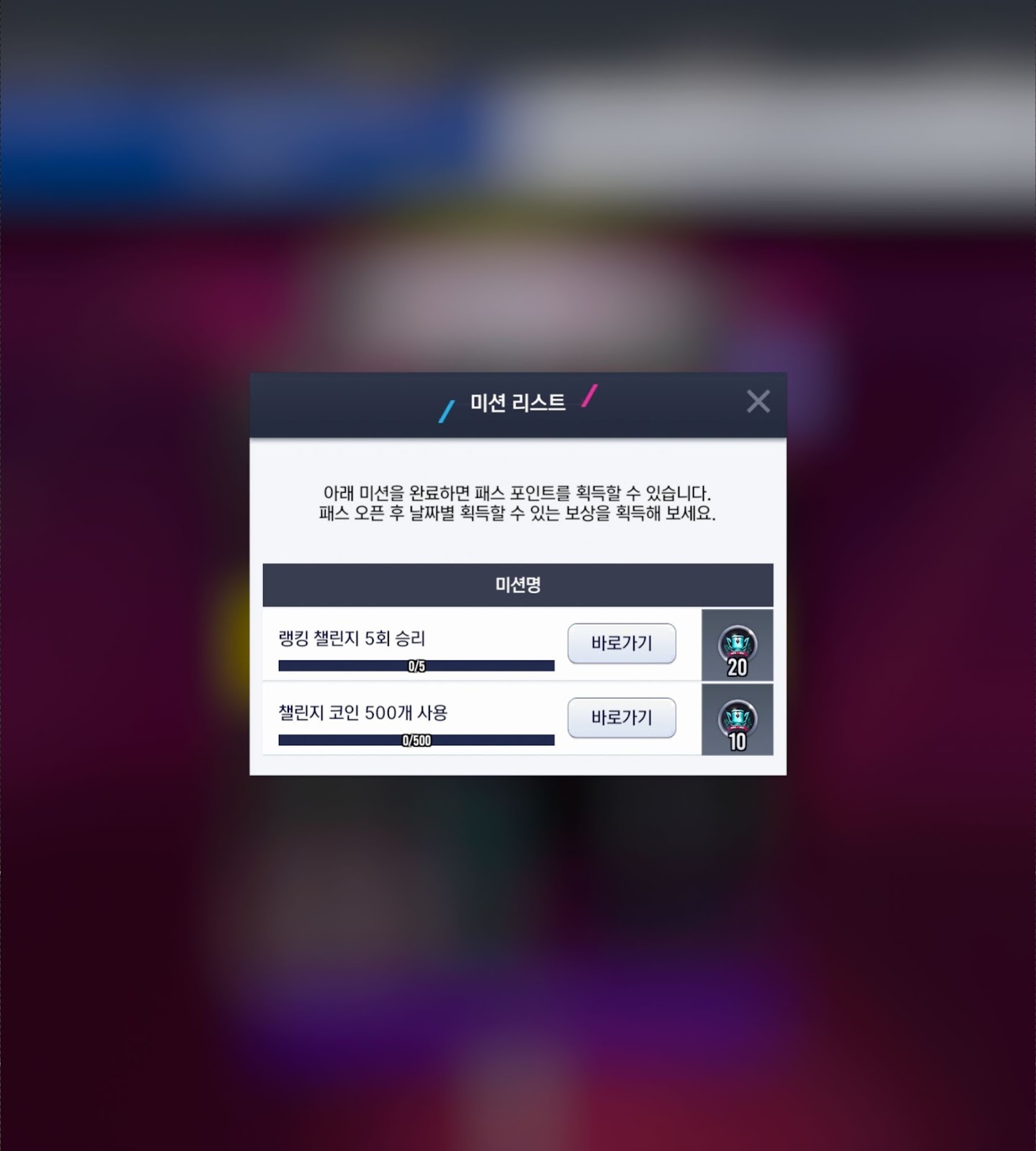 ▶ 패스 포인트 획득 미션