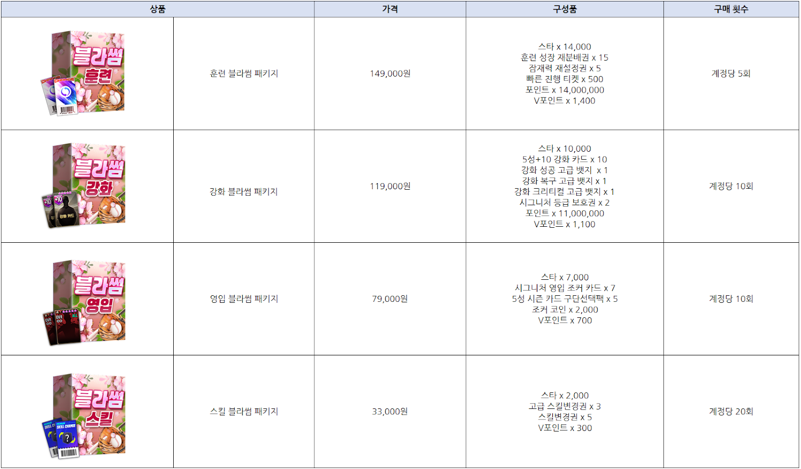 블라썸 패키지가 4/6(월) 00:00 부터 판매될 예정입니다.