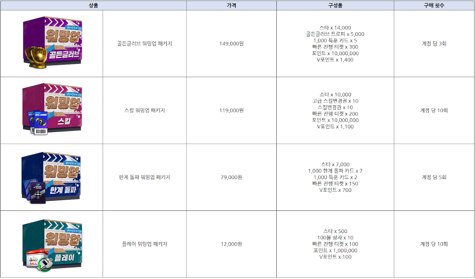 워밍업 패키지가 4/8(수) 00:00 부터 판매될 예정입니다.