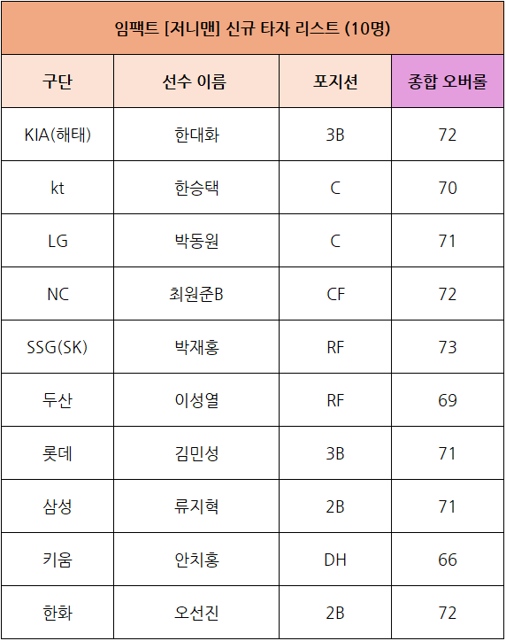 <임팩트 [저니맨] 신규 타자 카드 (10명)>