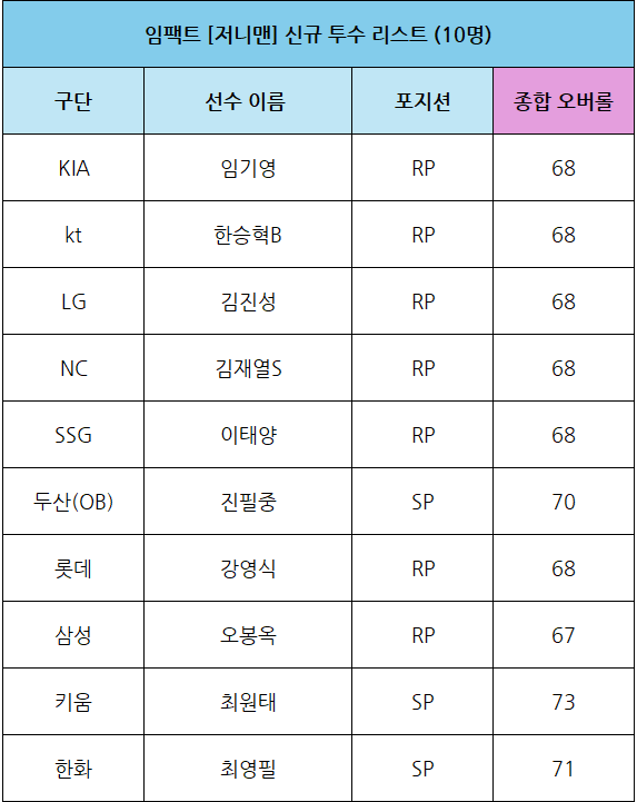 <임팩트 [저니맨] 신규 투수 카드 (10명)>