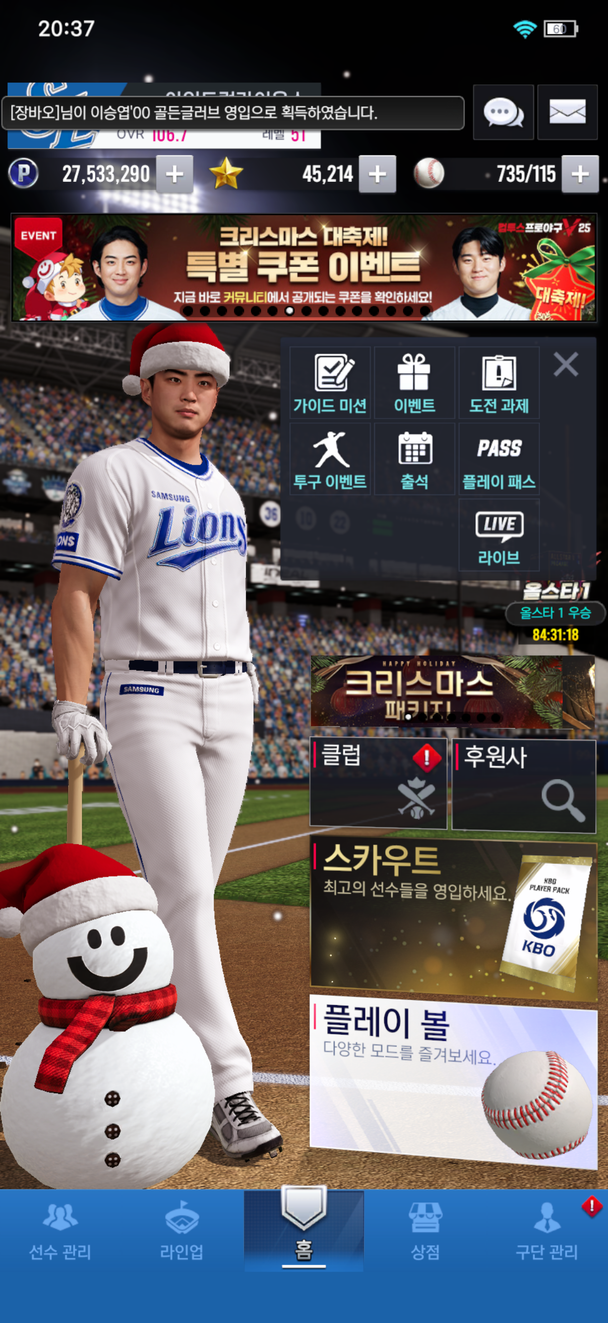 [산타 지니에게 선물을 말해봐!] 이만수 주세여!! 시그너쳐 아임드럼라이온스 2025-12-24 20:38 14 0 공유 공유 URL 복사 페이스북 왓츠앱 카카오톡 라인 레딧 닫기 공유 0 0 댓글 0