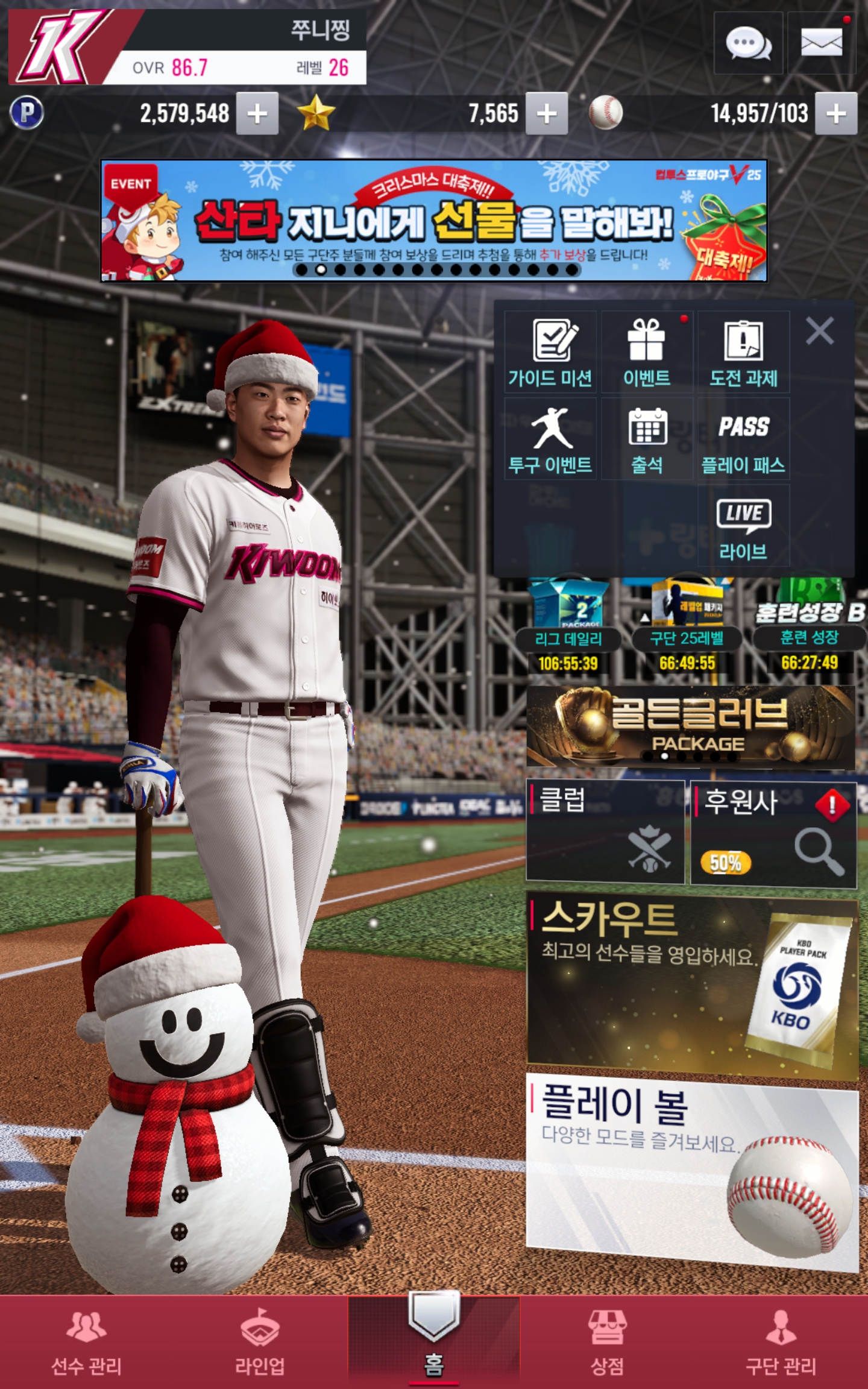 [산타 지니에게 선물을 말해봐!] 크리스마스 선물은..! 국가대표 구단선택팩 주세요.(메리크리스마스) 쭈니찡 2025-12-24 23:29 16 0 공유 공유 URL 복사 페이스북 왓츠앱 카카오톡 라인 레딧 닫기 공유 0 0 댓글 0