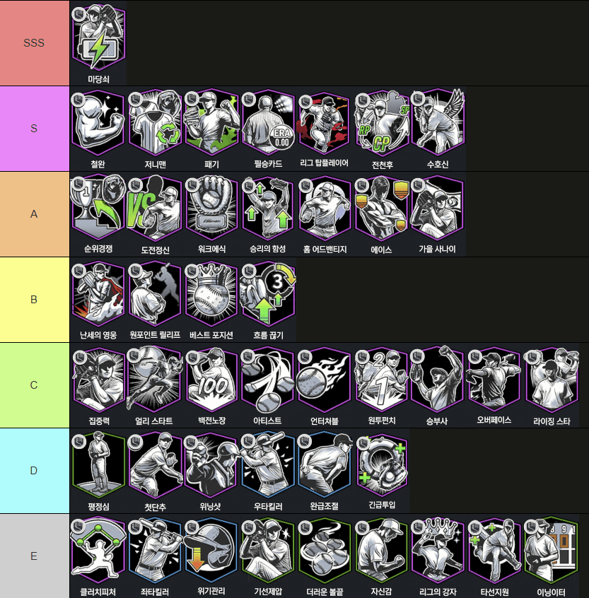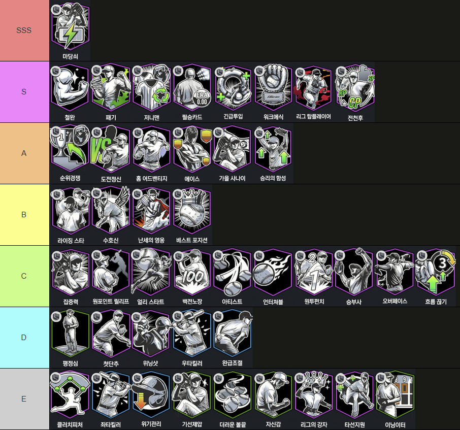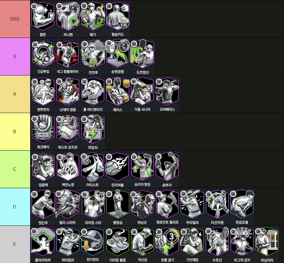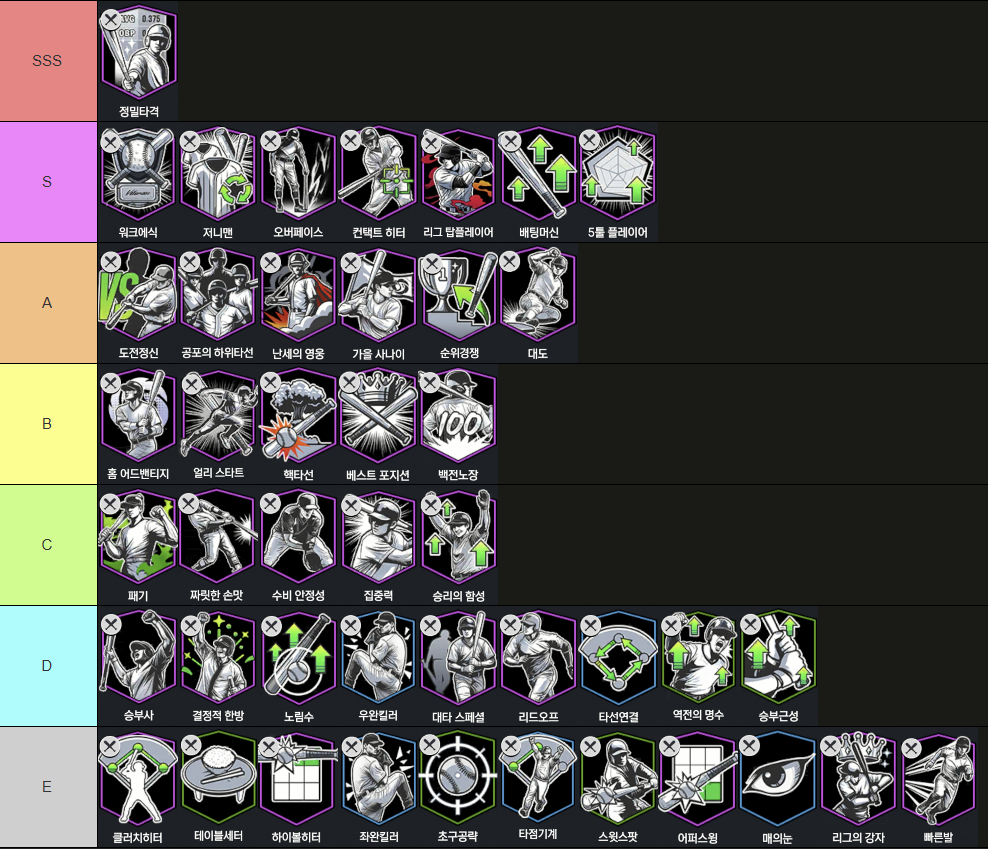 출처: 한 눈에 보는 스킬 티어리스트 (모음) - 컴투스프로야구 V25 마이너 갤러리