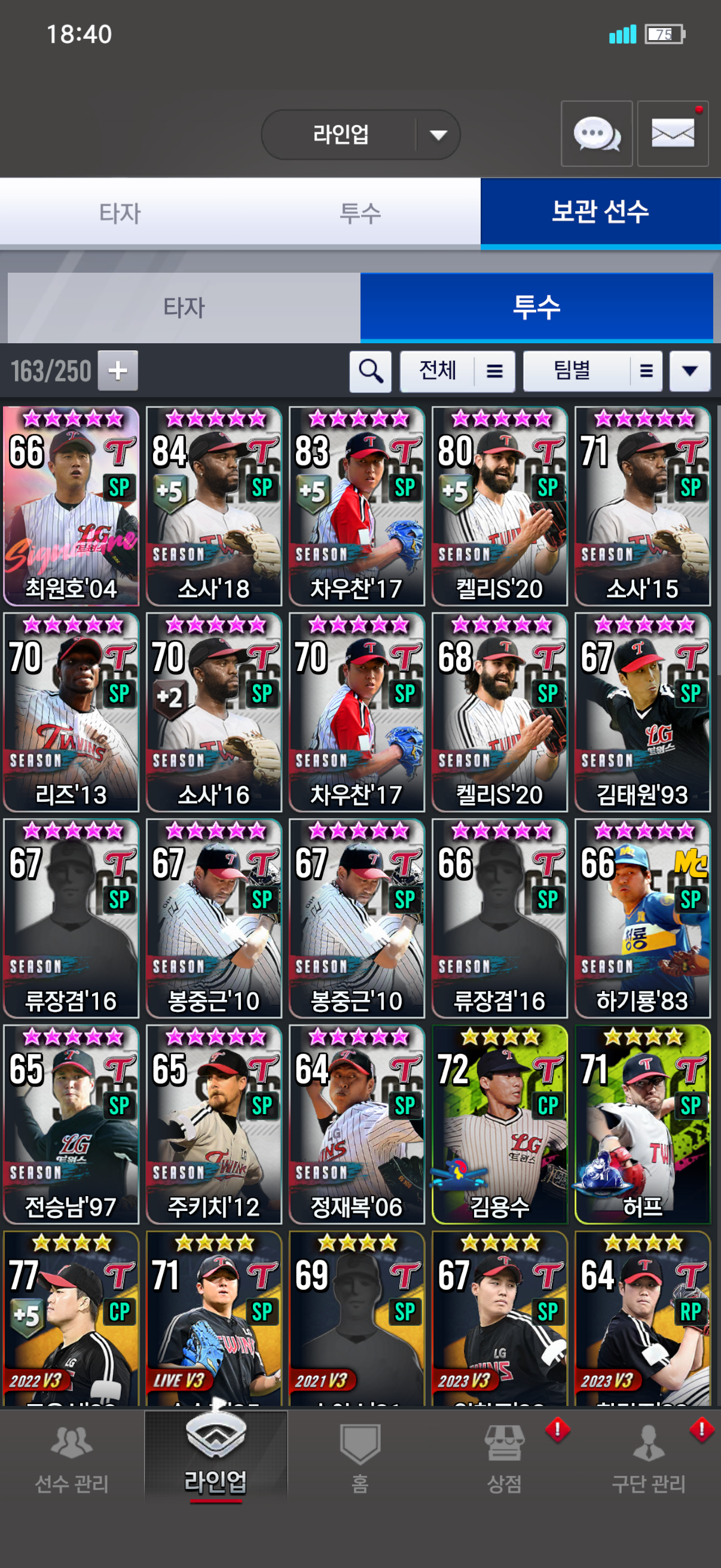 일단 좀 좋은 카드가 아닌 선수들은 한계돌파나 특훈하기가 아까워서 안하고 있습니다ㅜ