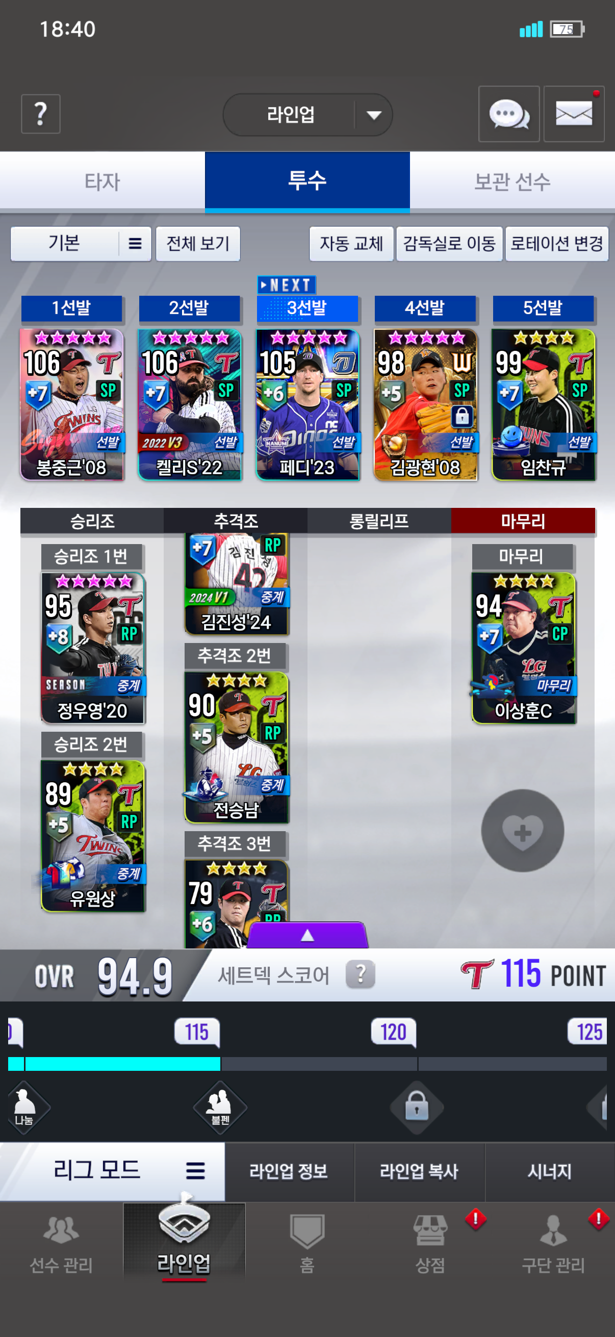 불펜이 좀 많이 안좋아서 구종마스터 정우영을 뽑을지
