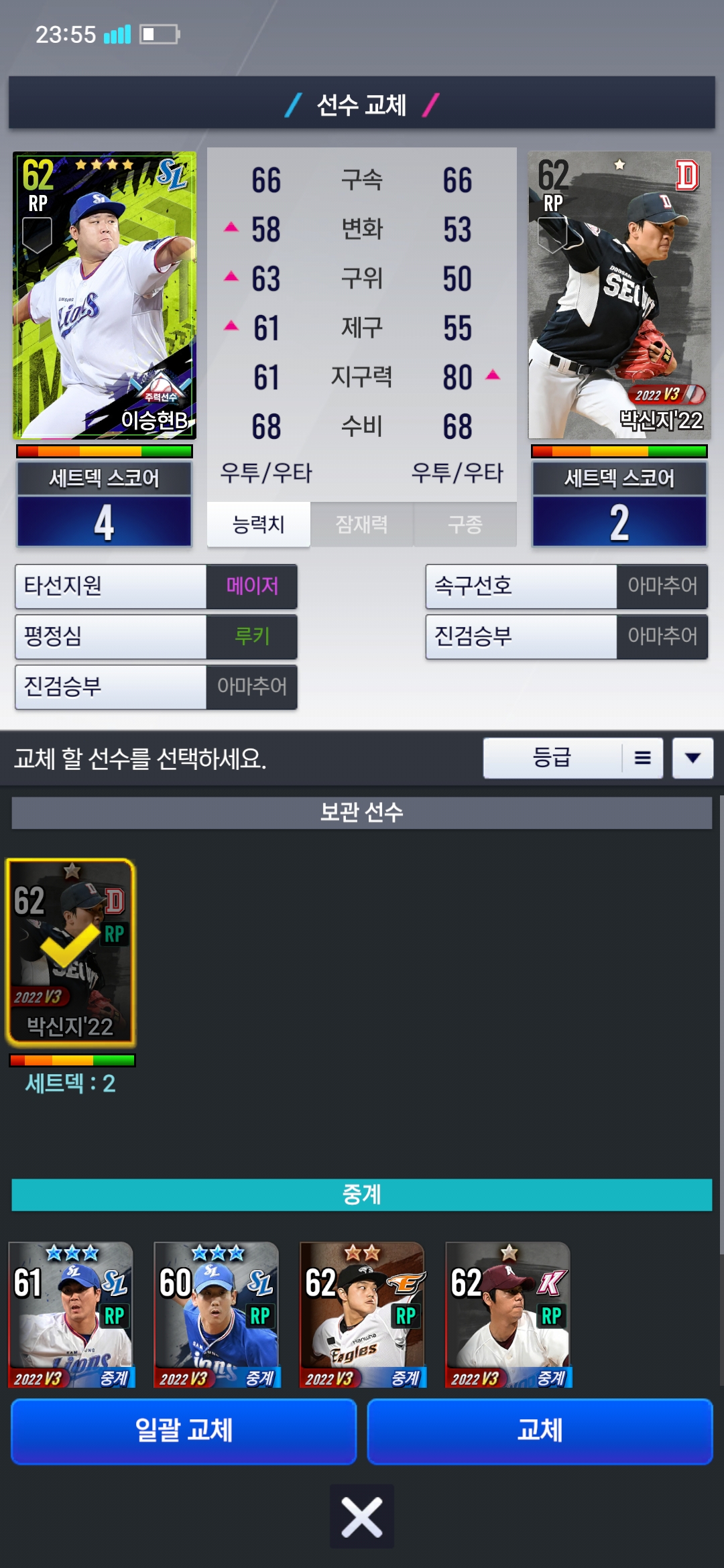 투수도 마찬가지로 라인업에서 제외하고 타자를 눌러 저장해주세요