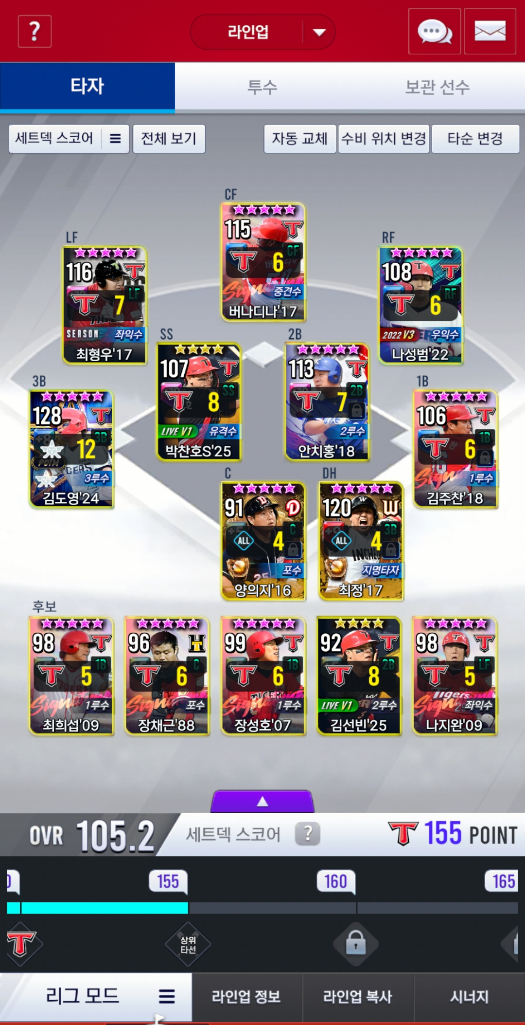 골도영 7강까지 키운 상태이고 24골자욱으로 바꿀까요? 최형우 저건 오픈때부터 써서 아쉽긴한데..ㅎ