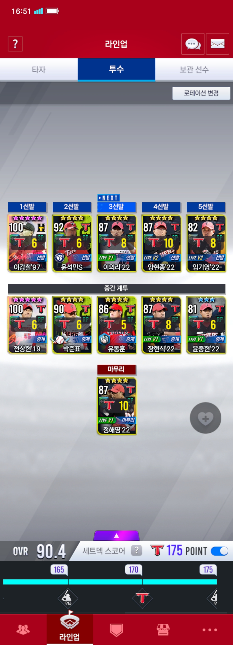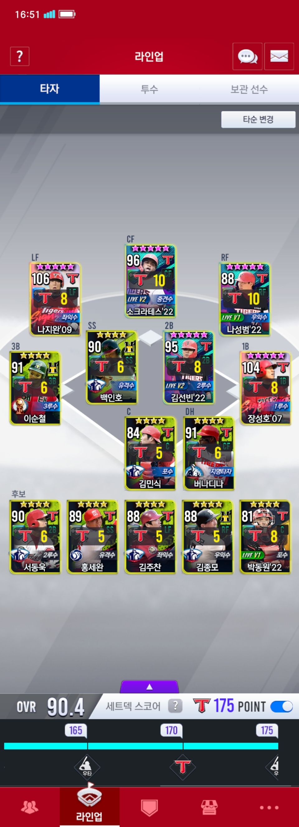 나성범도 22로 바꿔줘야하고(창고에서 썩어가는중 ㅋㅋㅋ) 임기영도 서재응으로 바꿀려고하는데