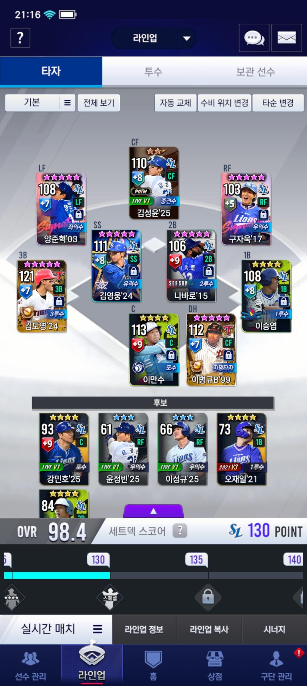 오재일은 v2되면 다른걸로 바꾸고 후보 임팩트는 시너지 때문에 해놨습니다