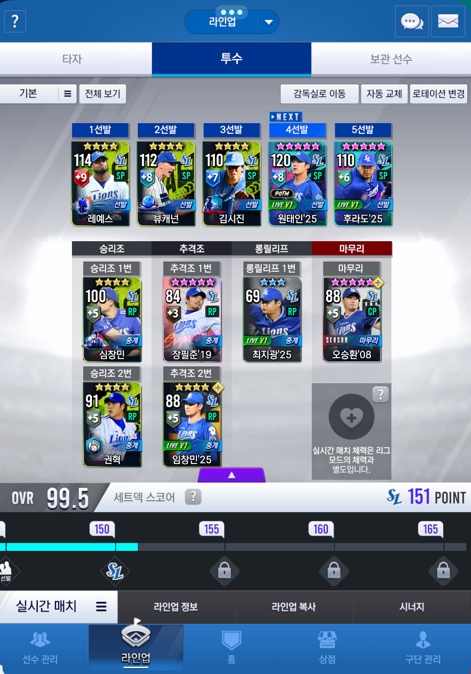 아니면 99 이병규 키우고 임팩트 선택팩으로 철완 김시진 3각 or 필계 권오준뽑을까요?