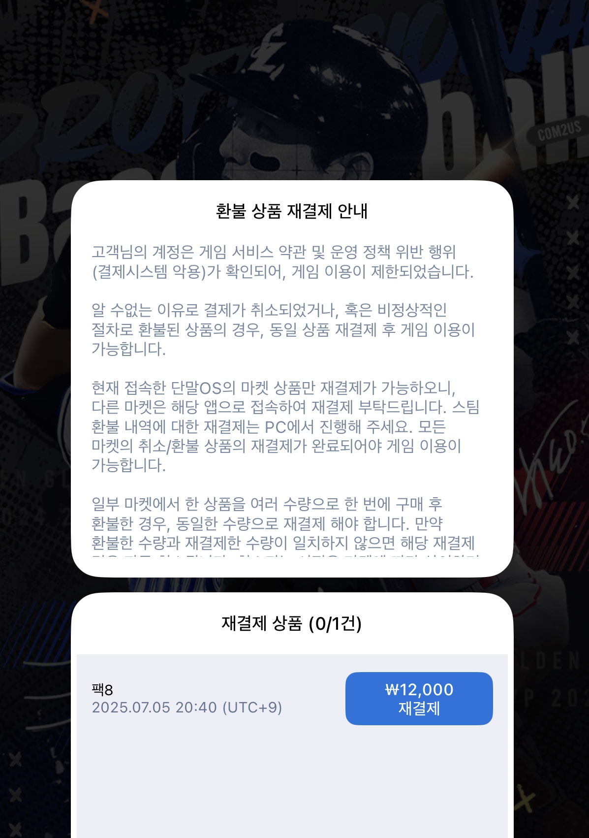 전지훈련 패스 오류 결제 환불 후 재결제 이거 어떻게 하나요,,?