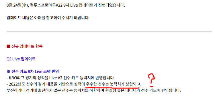 운영진분들이 말한 라이브는 성적이 우수한 선수는 상향인데