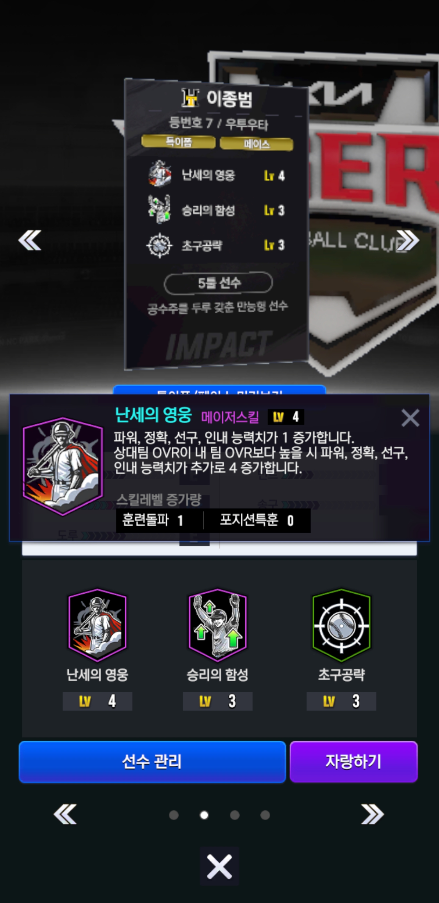 임팩 이종범 첫번째 스킬 난세의영웅인데 바꿔야 되나요?