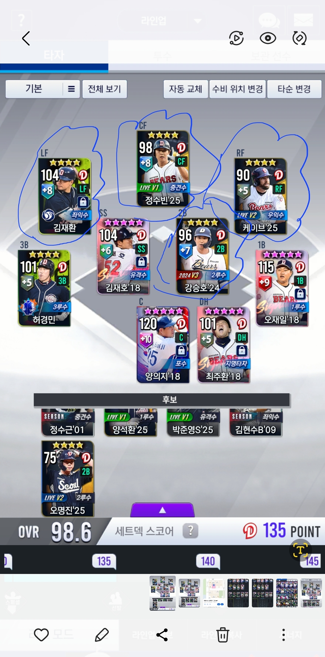 2. 타자진 타순 순번좀 짜주시면 감사하겠습니다.