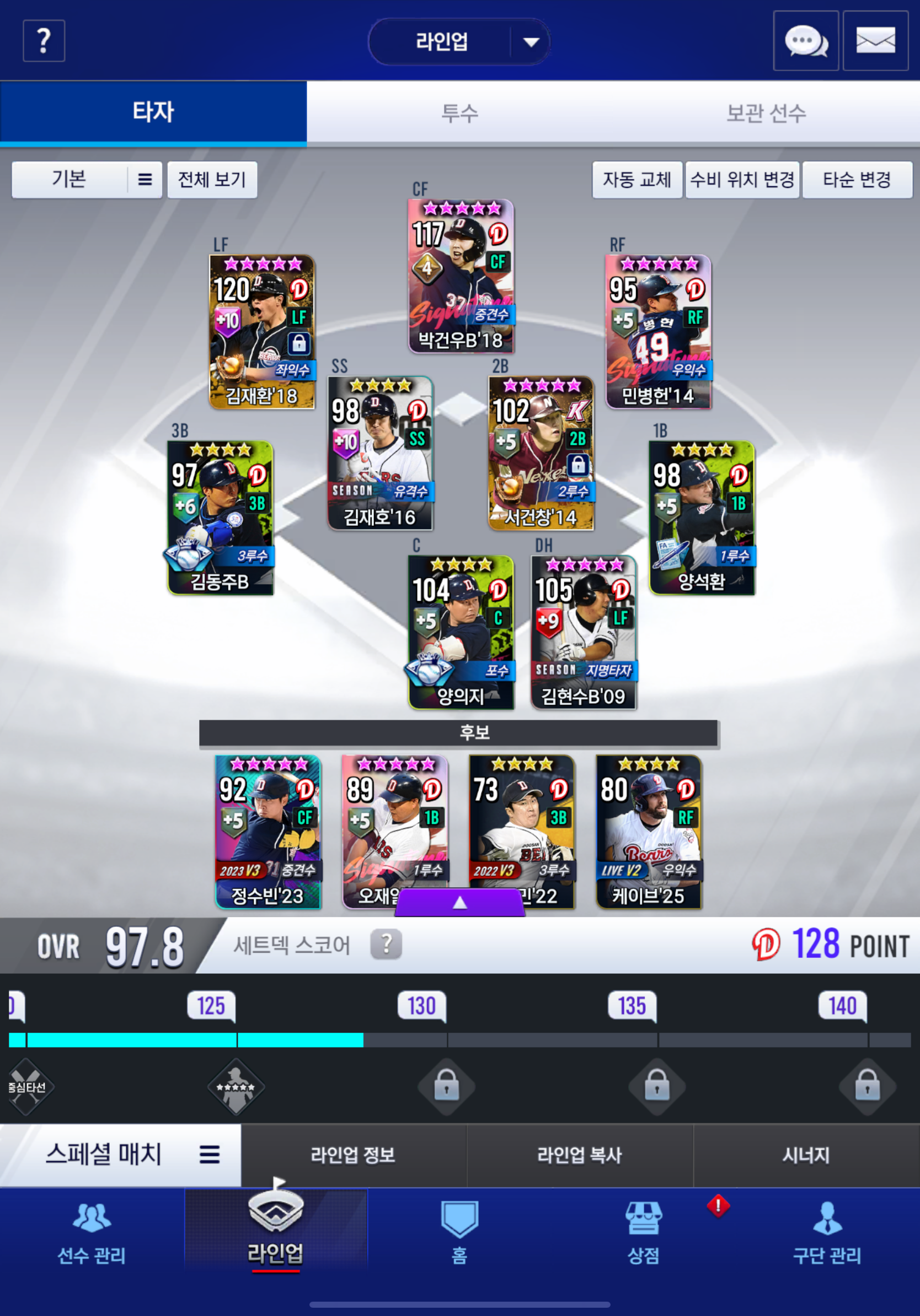 25라이브 양의지를 육성할까요? 핫콜드존이 에바긴한데 셋포랑 재물 있는 거 생각하면 더 나아보일것같기도하네요.