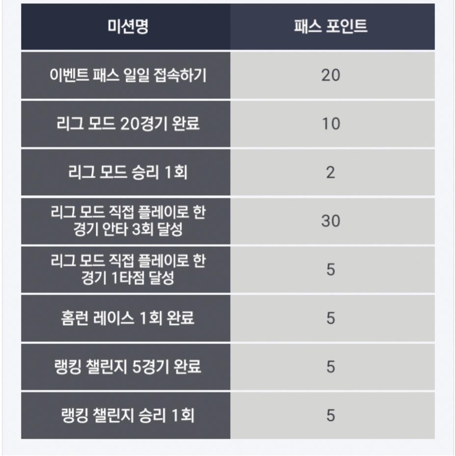 한가위 패스 홈런레이스 참여시 5포인트 미지급