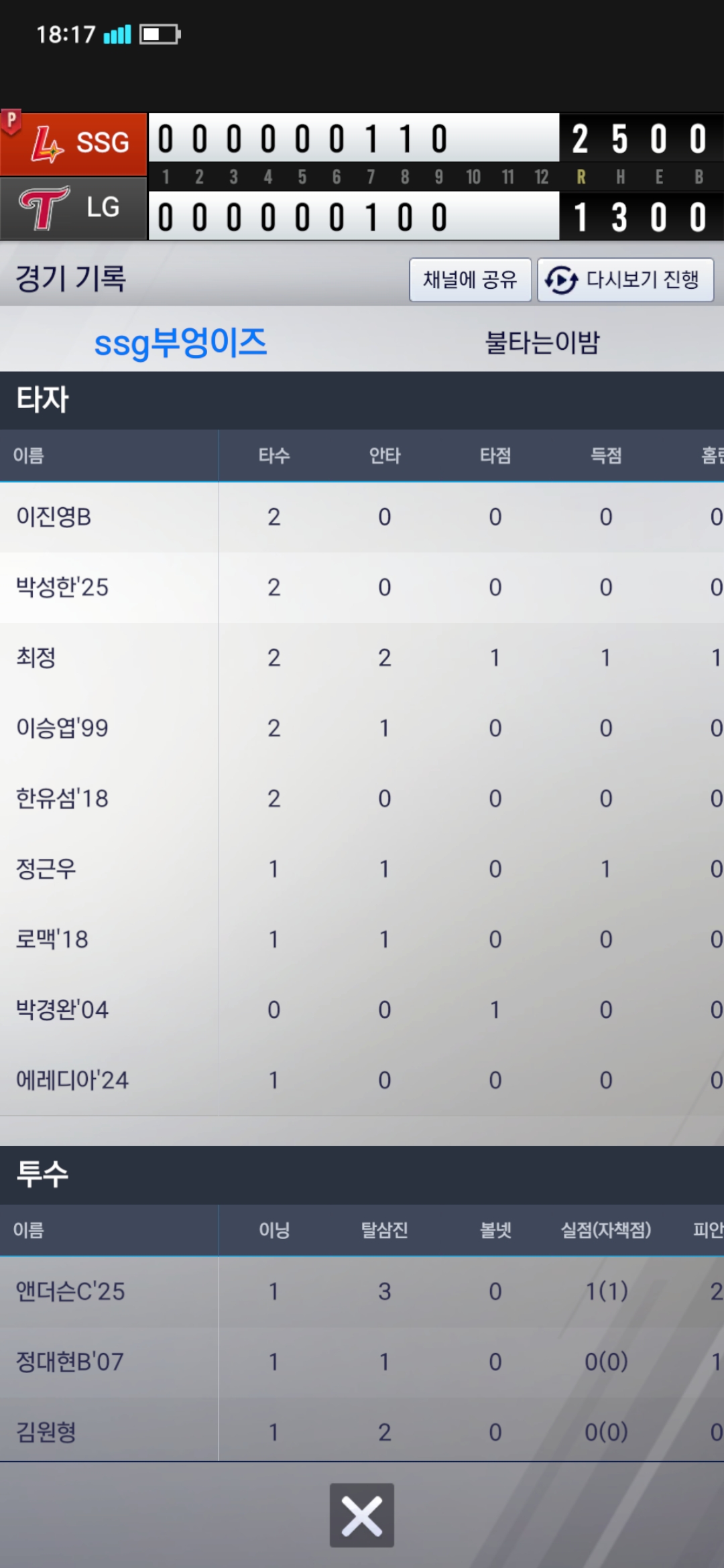 자유 게시판 오버룰 109 짜리 제 팀으로 이분을 이겼습니다! ssg부엉이즈 2025-10-03 18:43 222 7 공유 공유 URL 복사 페이스북 왓츠앱 카카오톡 라인 레딧 닫기 공유 2 4 댓글 7