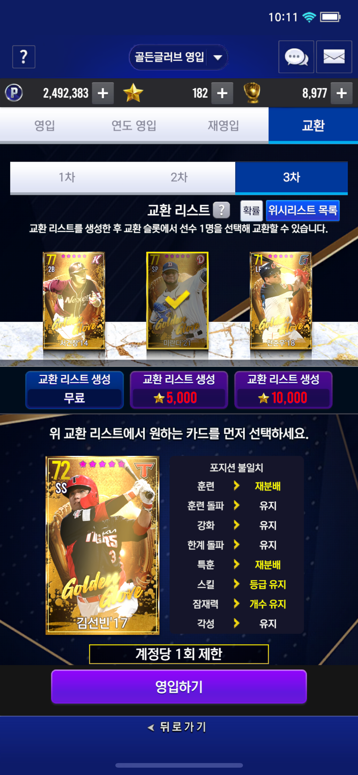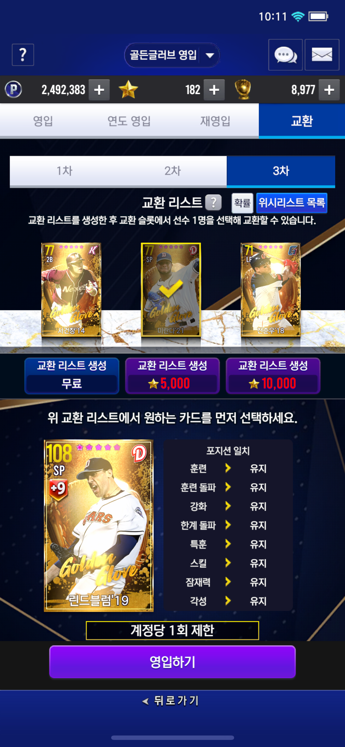 덱은 18두산을 목표로 하고있고 2차 교환으로 19린드블럼을 뽑아서 키우는 중이었는데 3차 교환에서 14서건창 21미란다 18전준우가 나왔습니다.