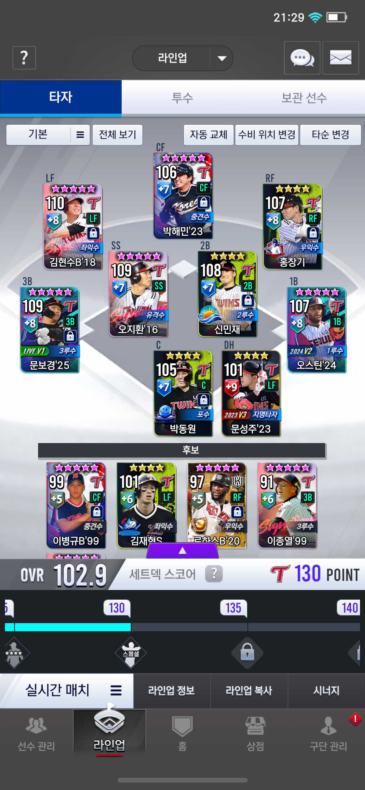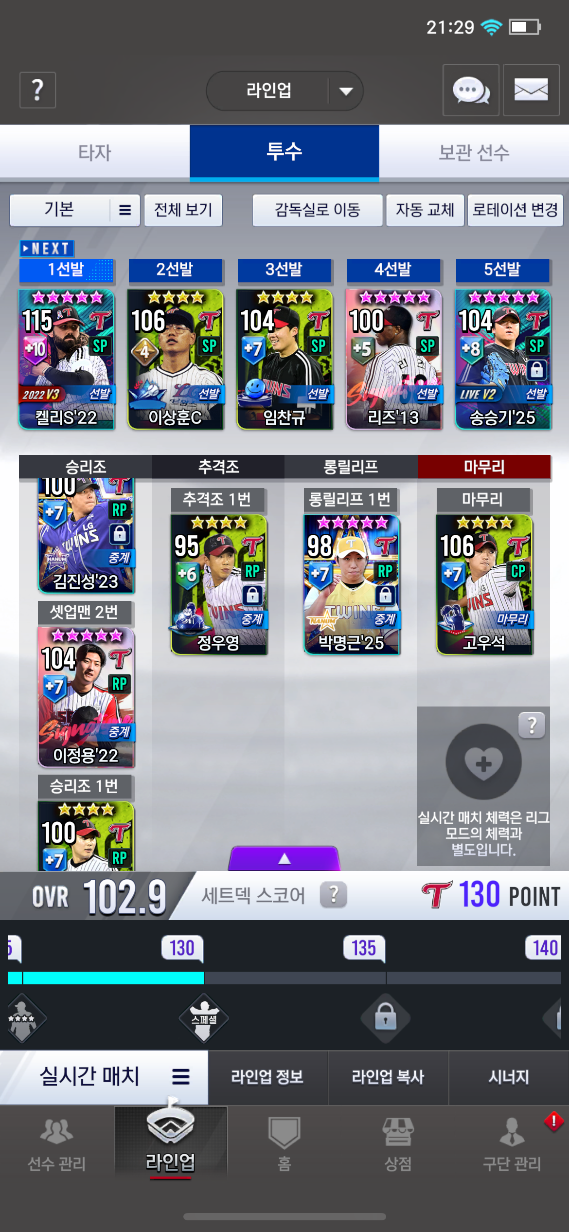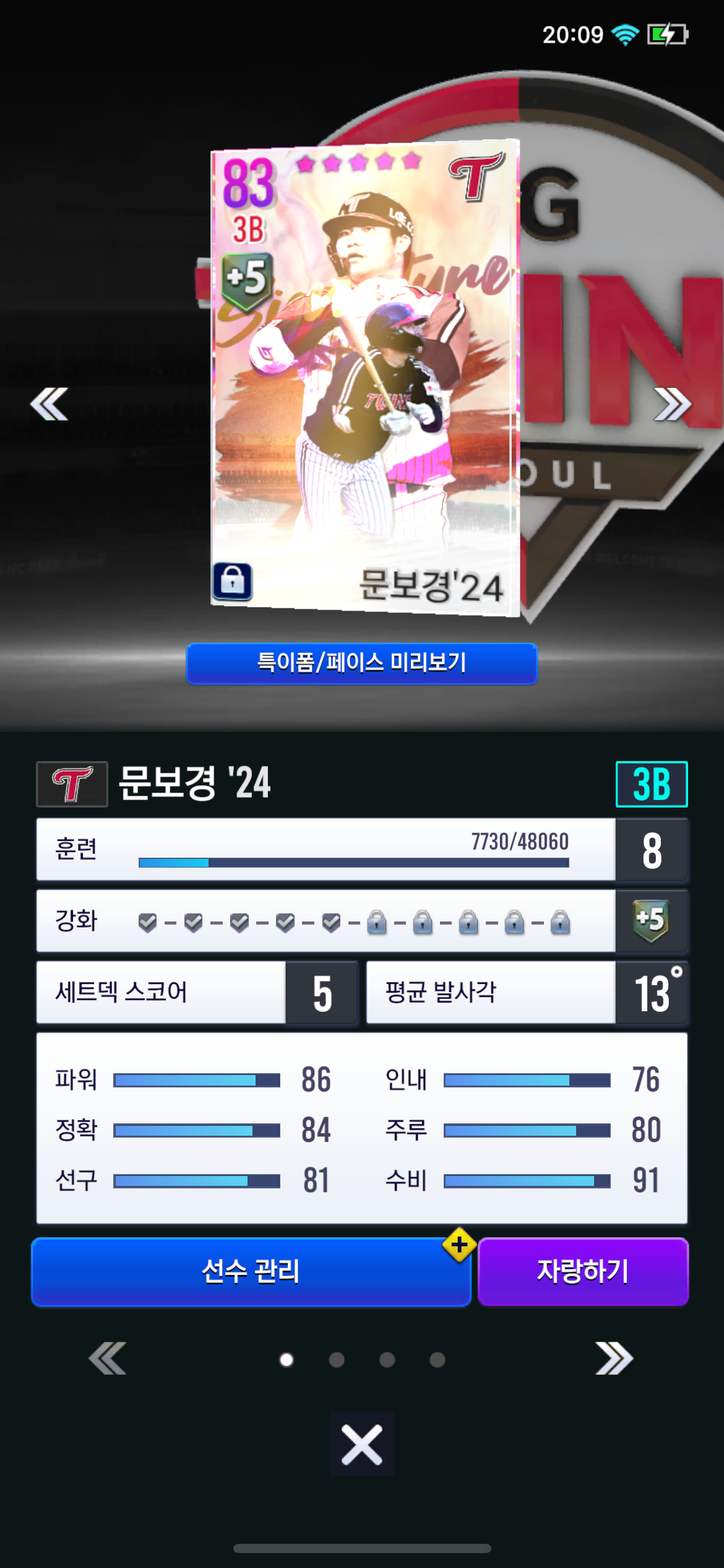 연도덱으로 안 묶고, 현역 선수의 좋은 카드로 만든 짬뽕낭만덱? 뭐 이런걸 사용하고 있습니다.