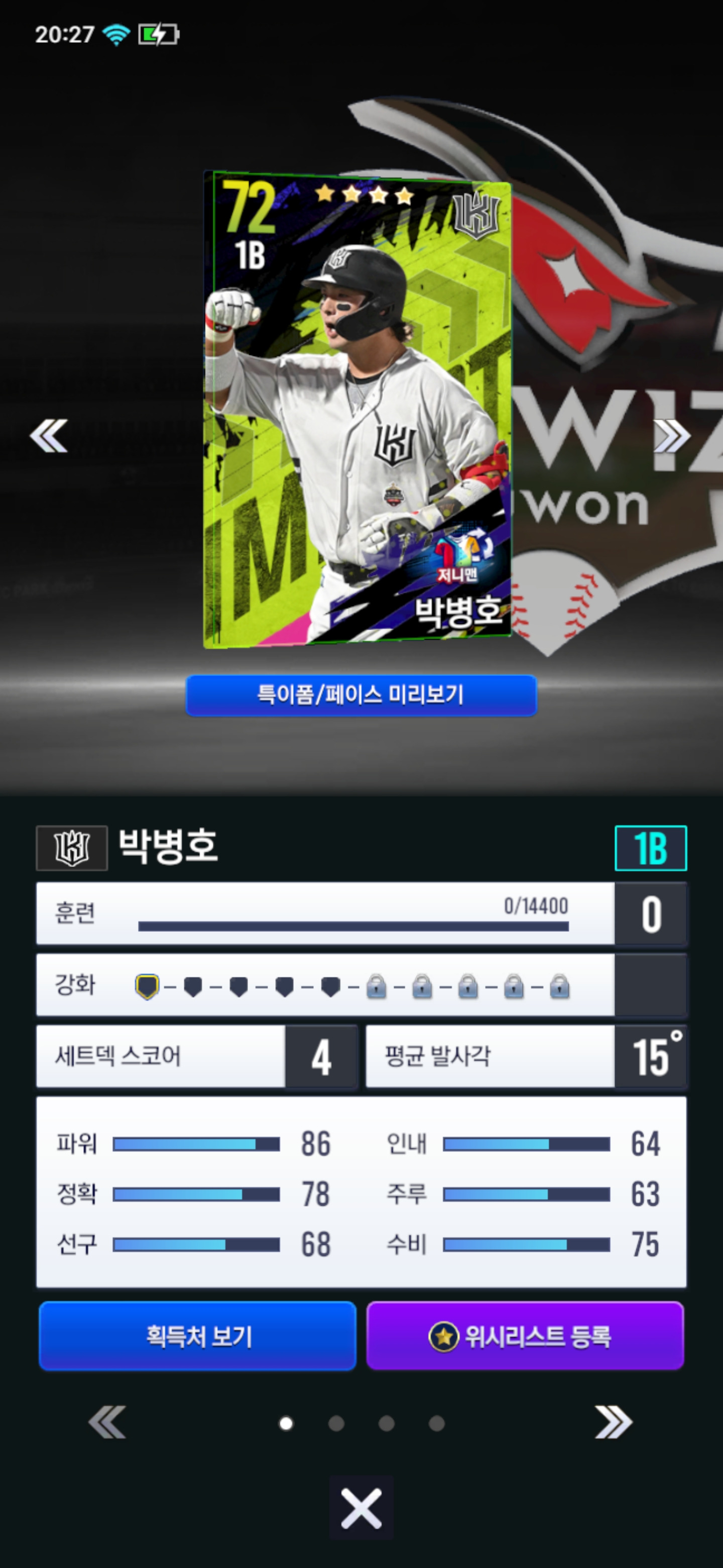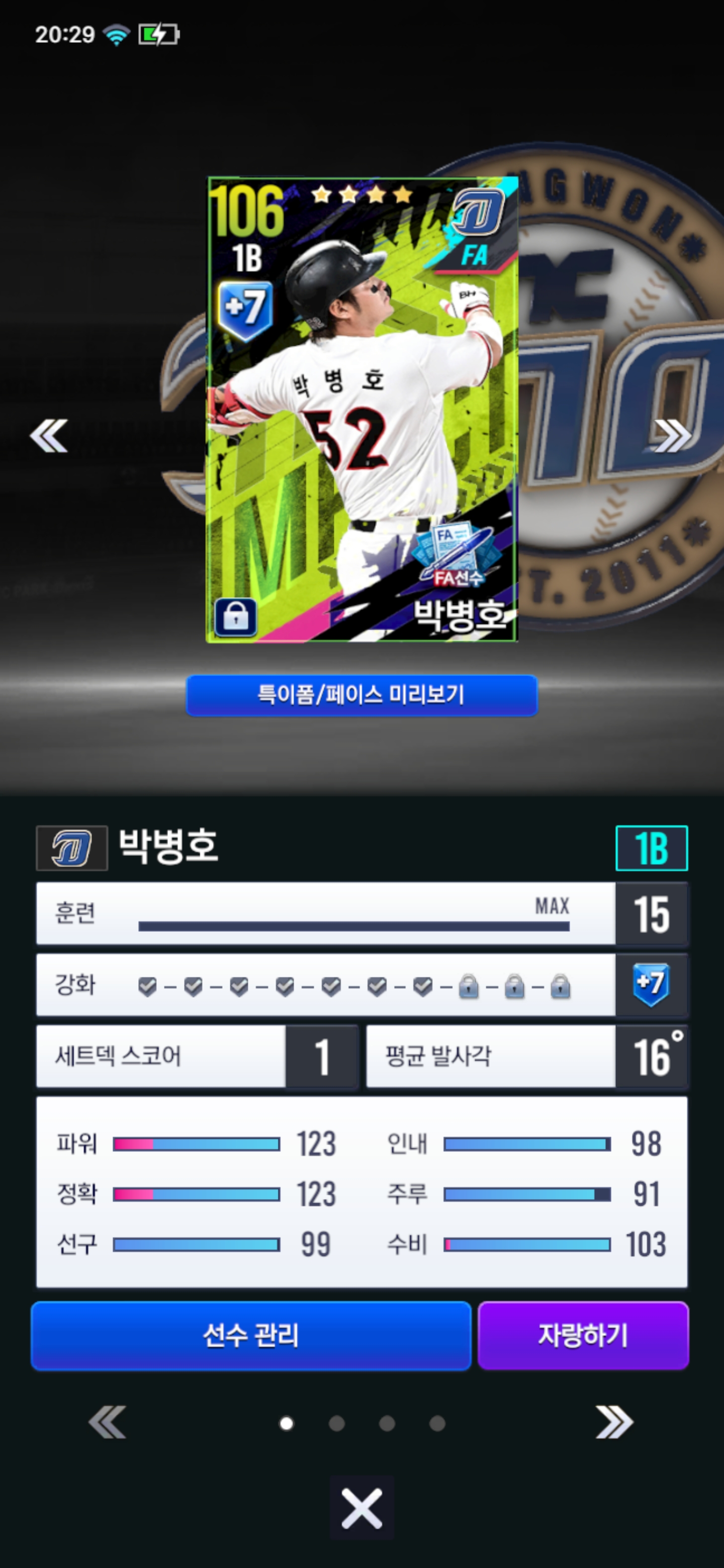 임팩 선택팩 먹고 저니맨 박병호를 fa해서 지금있는 fa박뱅을 계승해도될까