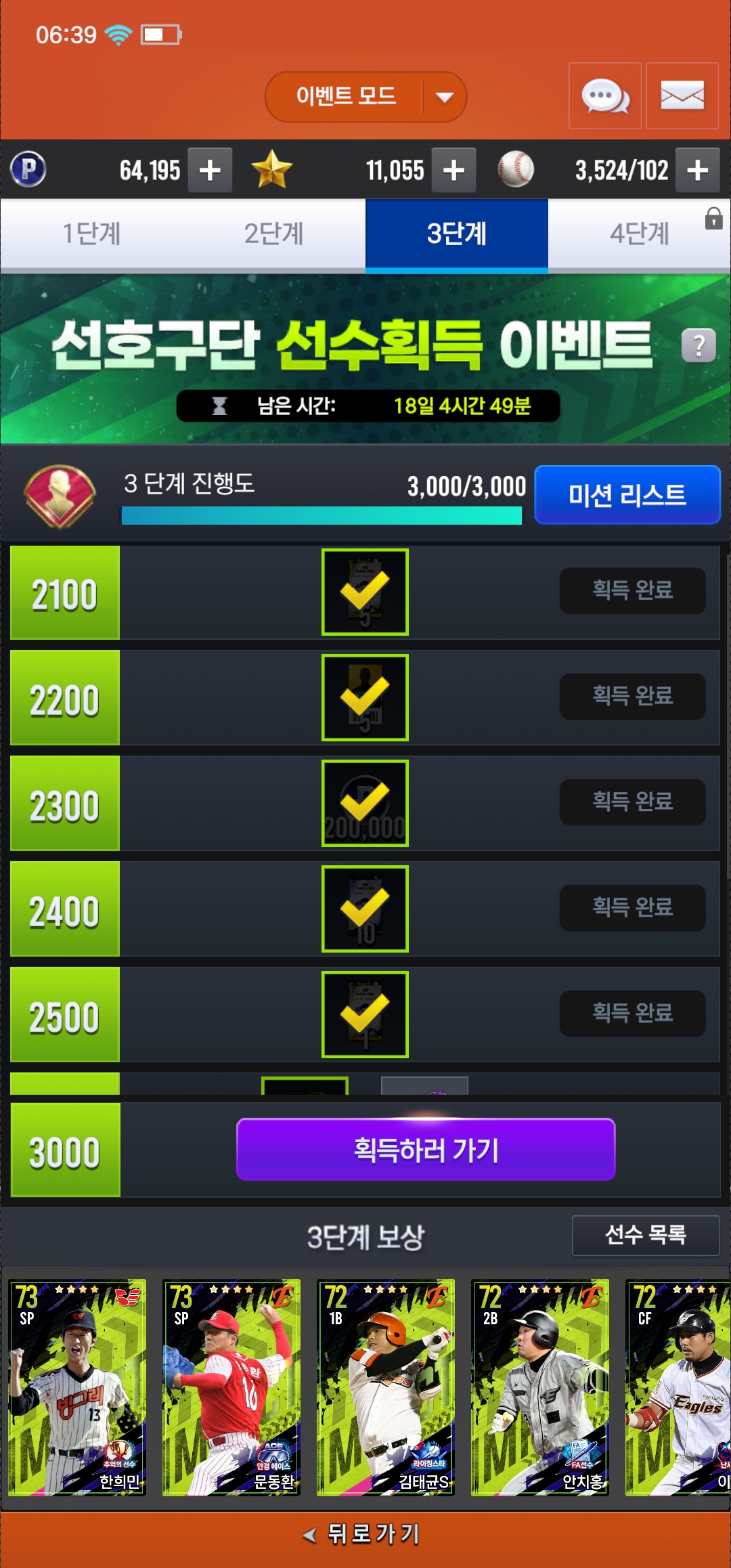 선호구단 선수획득 이벤트 3단계 다 깨서