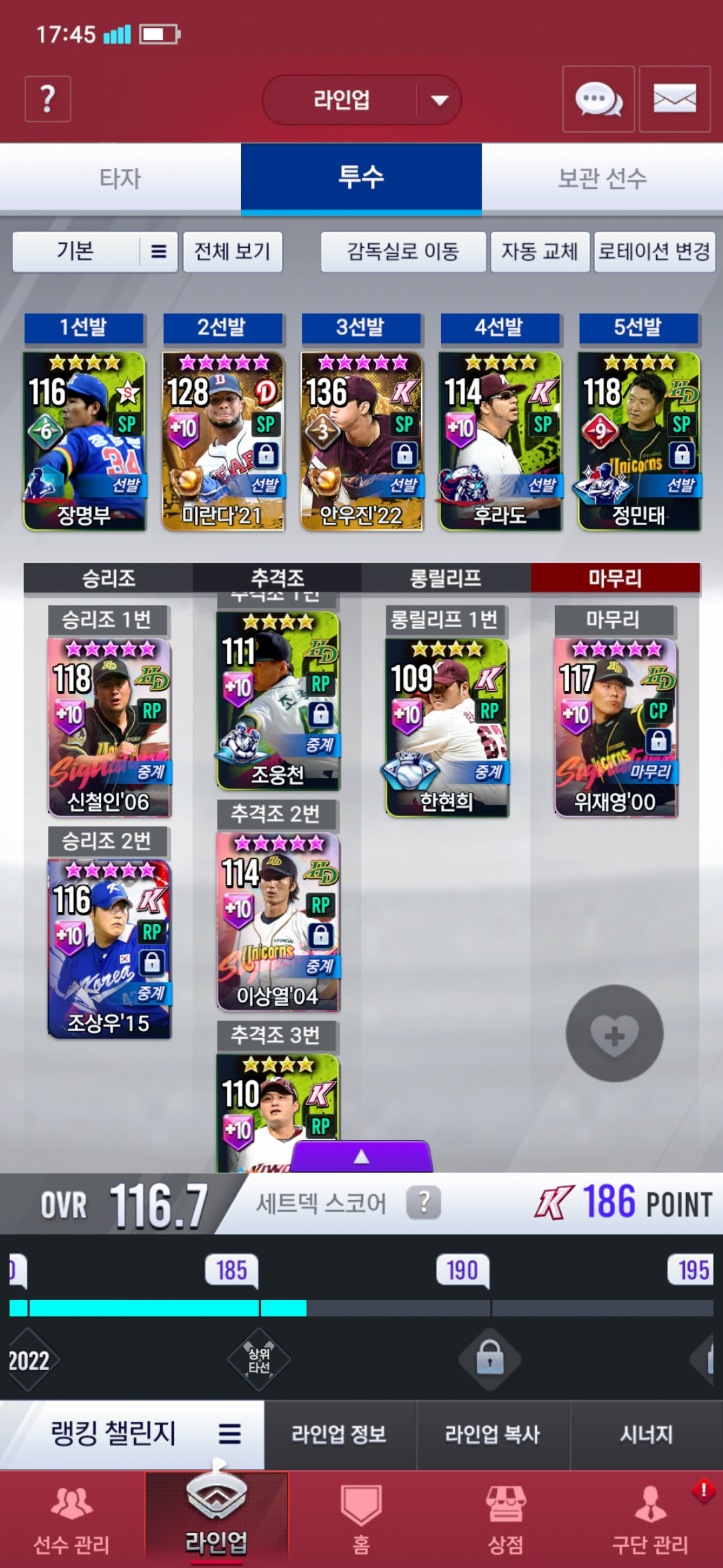 보관함에 23 페디 골글, 우에 장명부, 정명원 조합시그, 국소권 1장 보유중